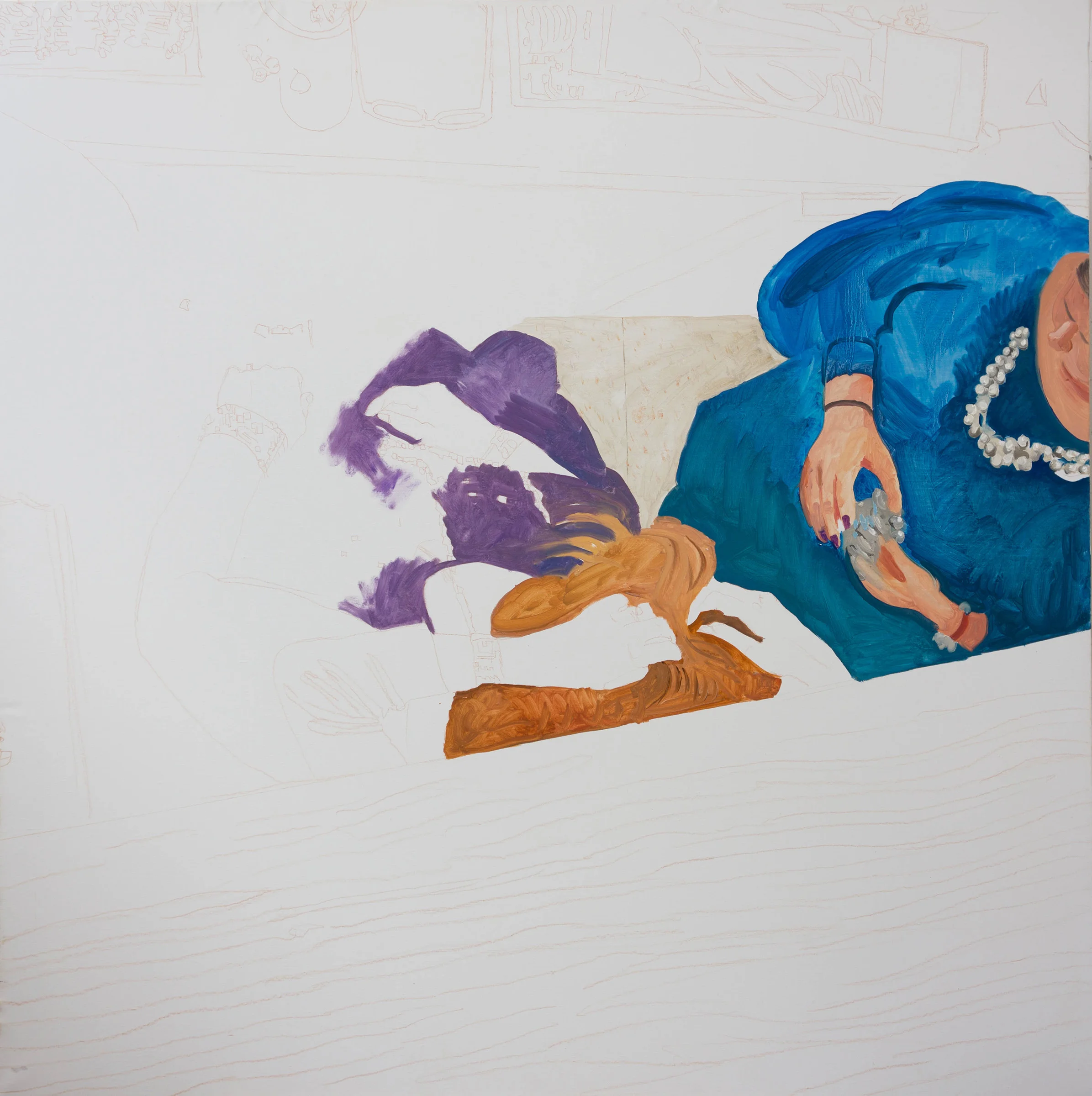 1:14pm update: this is stage 2 of the painting. as i work i make a mental note of which brushes and colors i need more of, as i'm putting in a blick order today. for some reason, my favorite brushes are out of stock, so i'm trying to find substitutes.