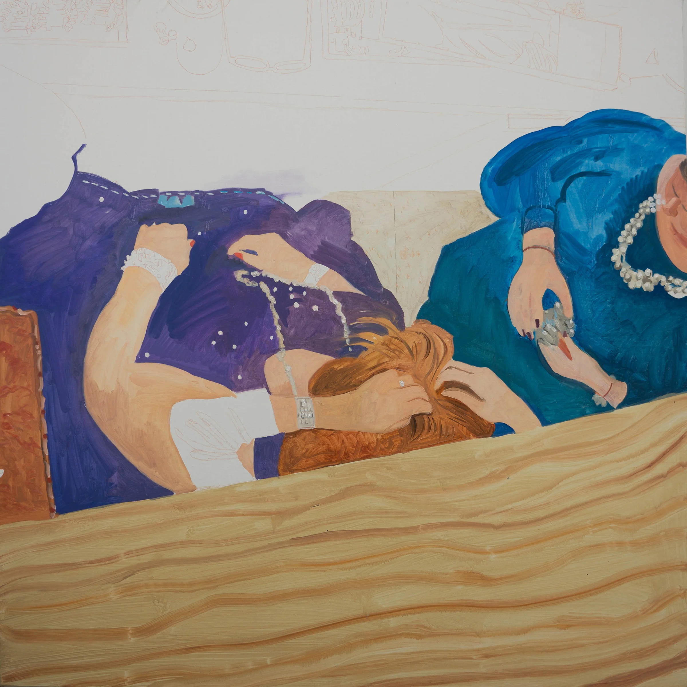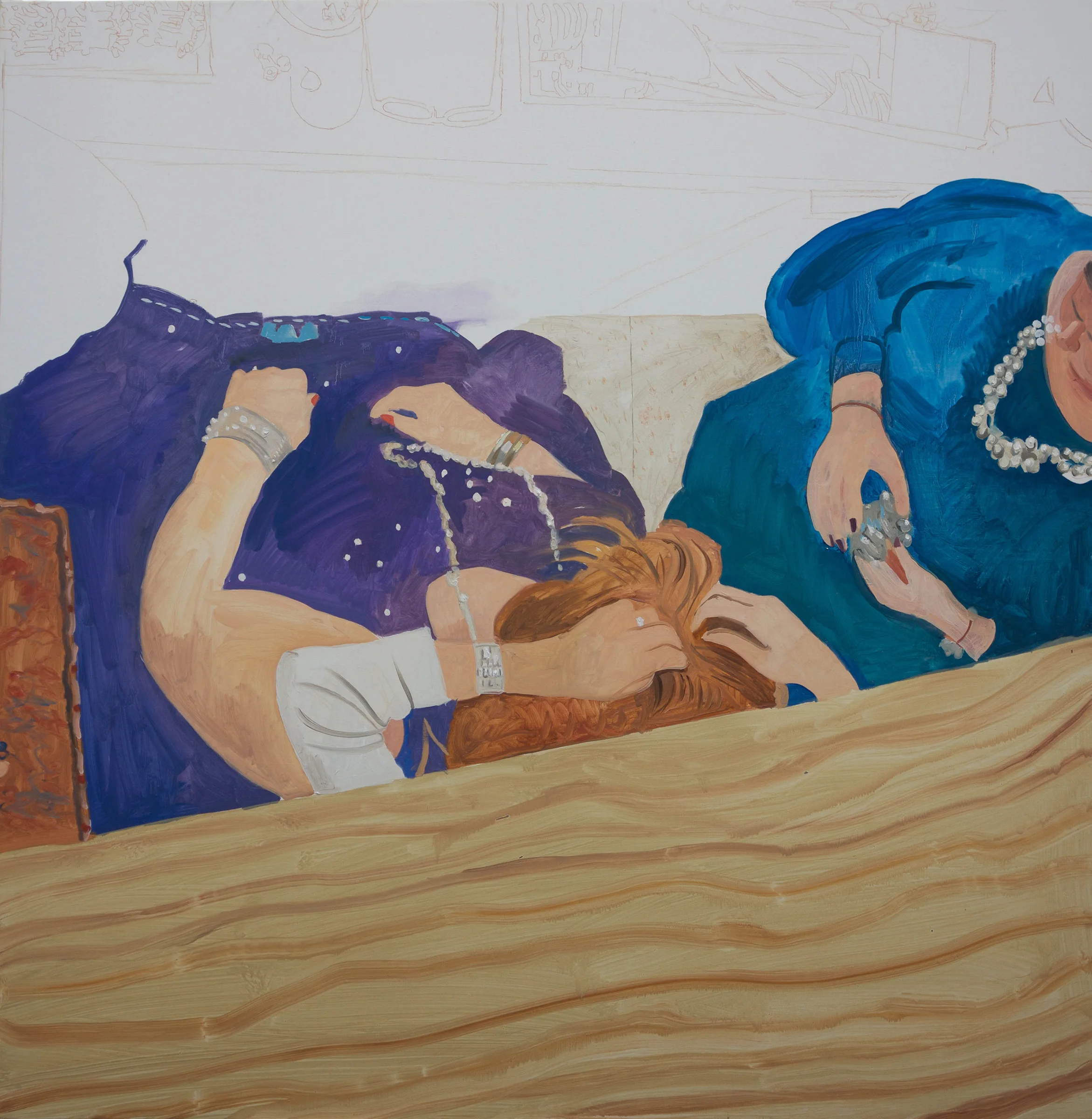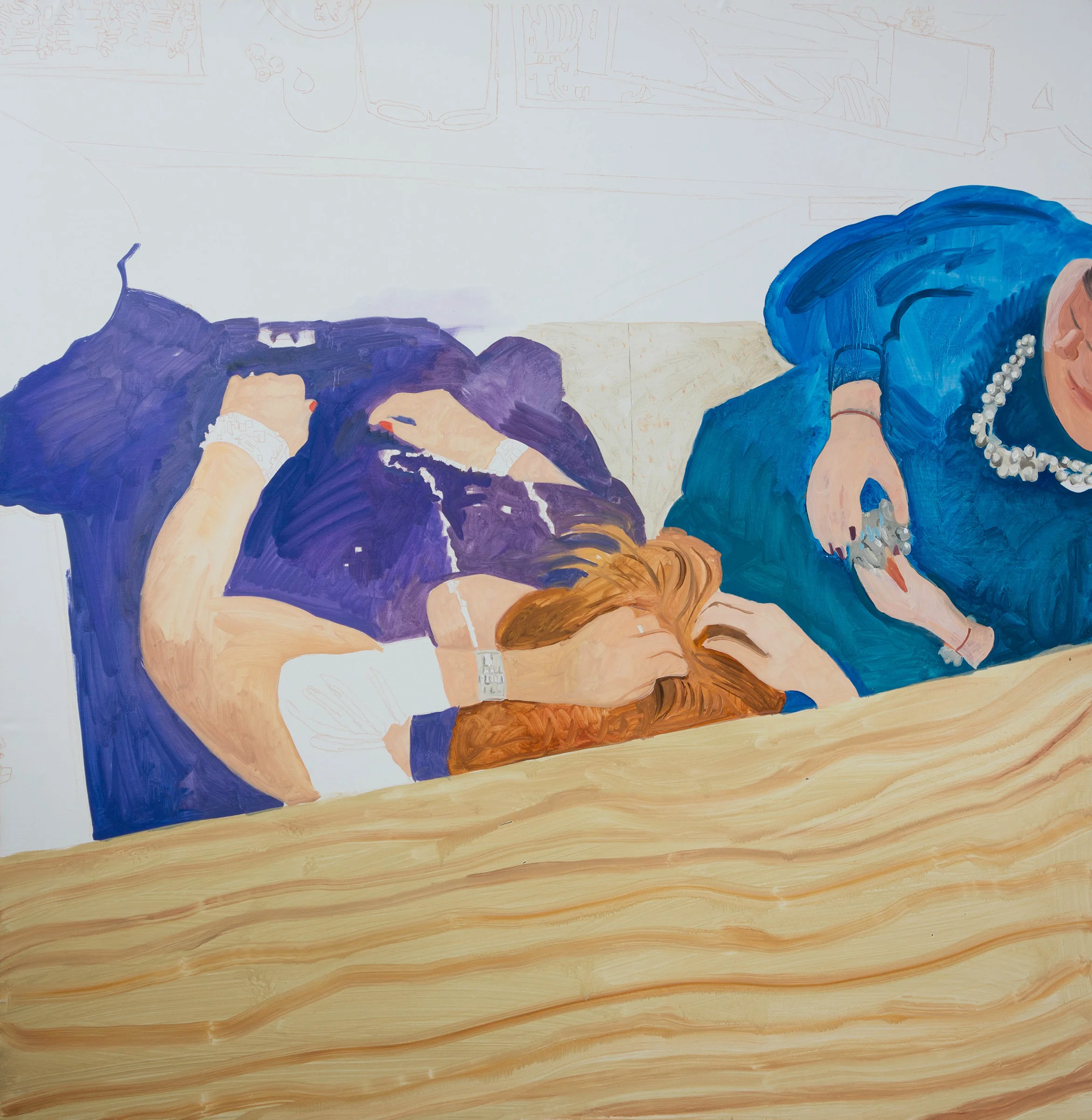 12:23pm update: more progress on this painting, which, in person, makes more visual sense as the composition fill out. on rows 2 & 3: the stages of the painting thus far. if you click on the 1st stage, row 2 left to make it full screen, then right click on the arrow to the right of each image, you can watch the progress of the painting.