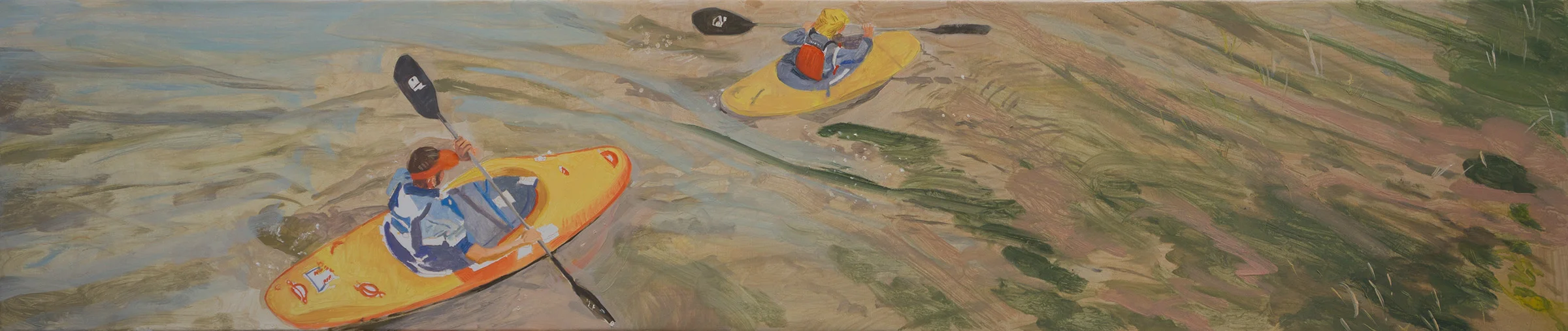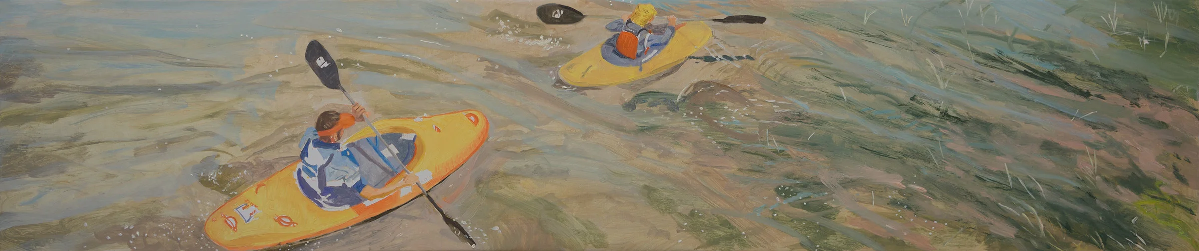 when i entered the studio, my critical first glance at parade 43 revealed something as yet unresolved in the execution of the water. it doesn't really look like water as much as a striated surface of some kind. there's no transparency. i'm a little sorry i moved so fast yesterday. i have to be willing to totally fuck it up when i go back into it, because the thinly painted surface has dried, so i'll be overpainting, rather than wet-into-wet. i'll post pics as i go.