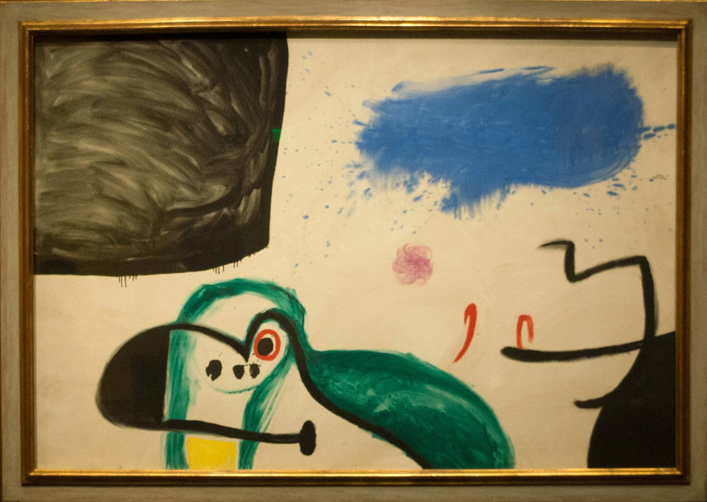 LATE MIRO: i was unaware of the late miro paintings and sculpture. it was impressive and heartening to see him break away from his predictable miro-isms and explore new territory. influenced, by his own admission, by some of the abstract expressionist work of that period of the '60's, he explored refreshingly new imagery in his mid eighties.