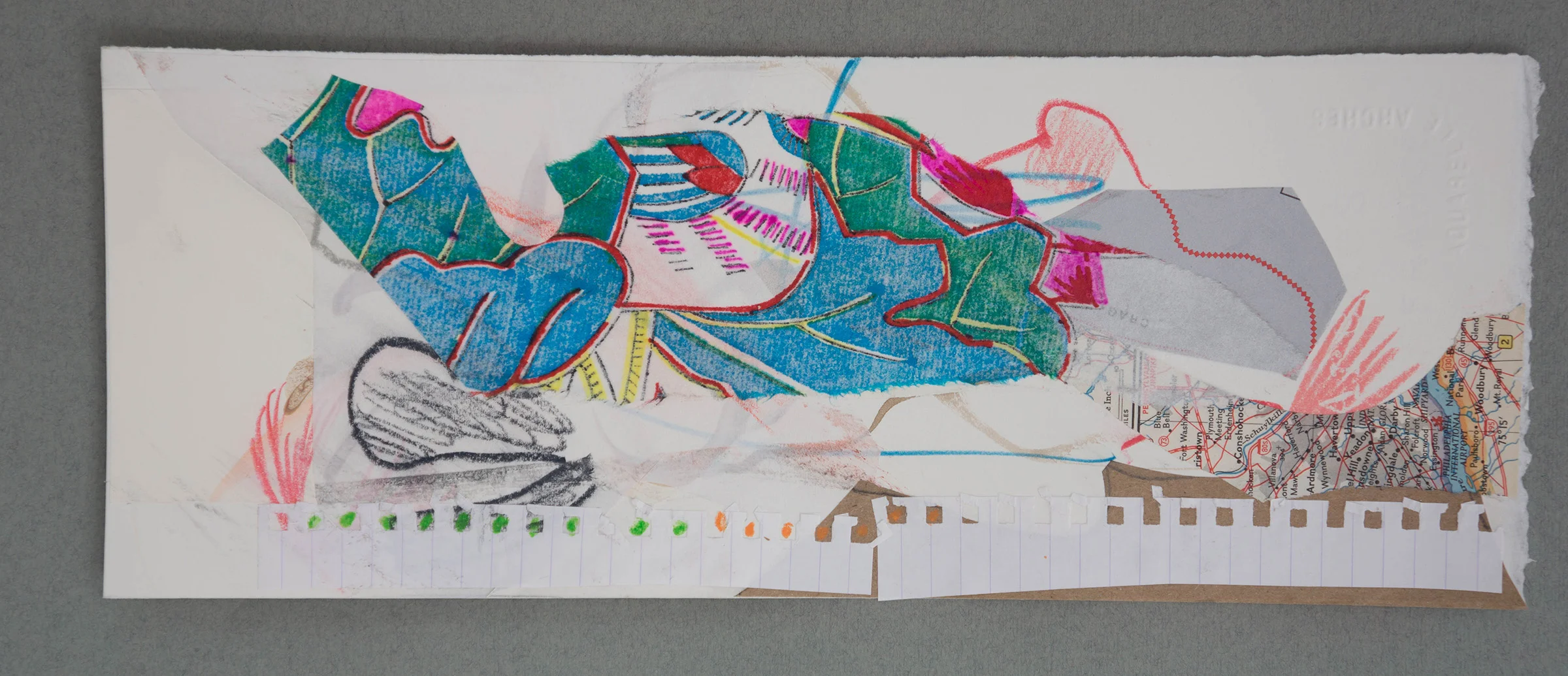 in these abstract collages, my hands try to keep up with my instinct. in parade 44, and the entire series, i find ways of staying connected to my instincts while plotting my next move, and try to remain open to shifting direction when i get the message.