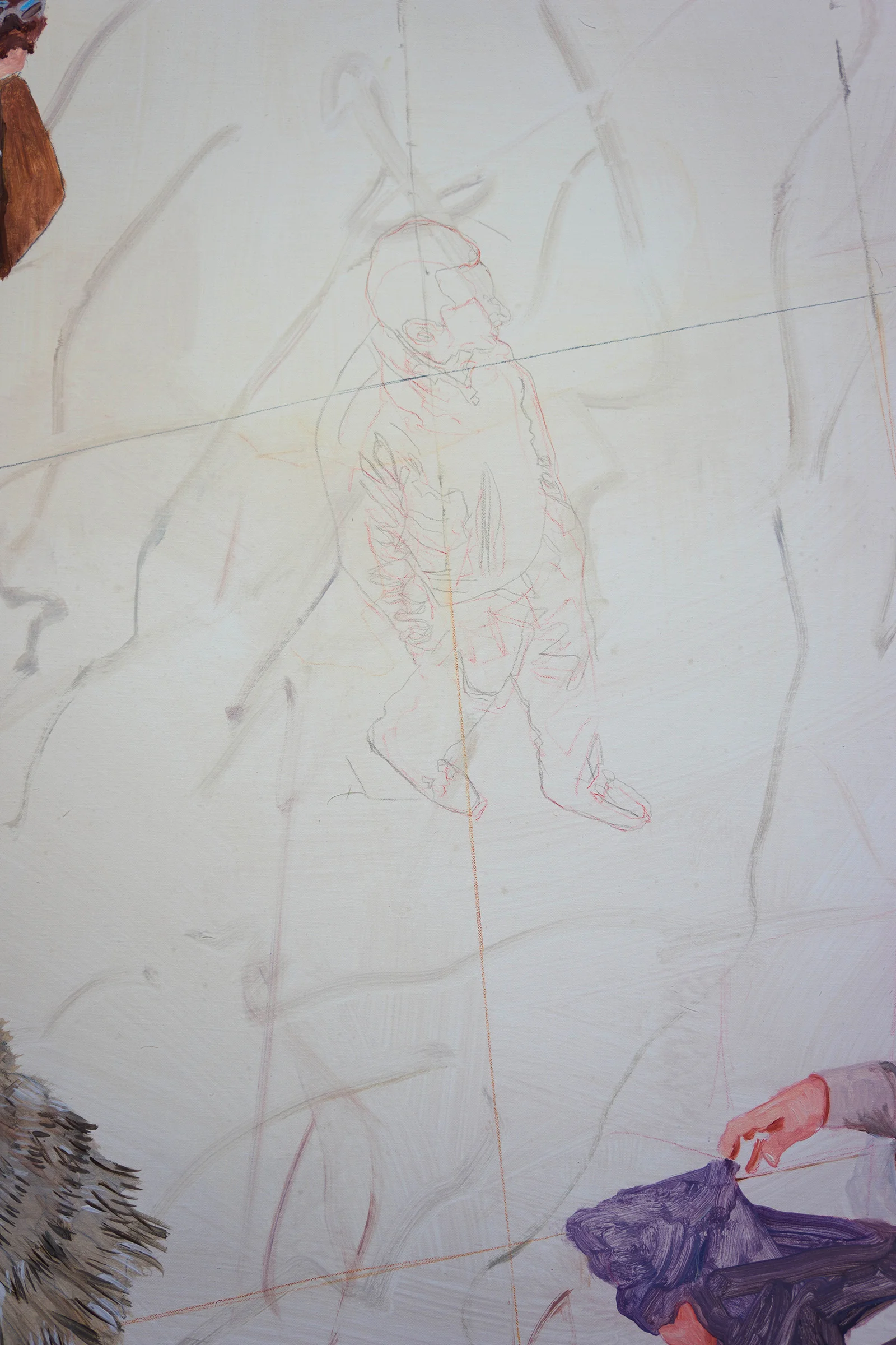 4:16 pm: i've had parade 41 here in my studio since it was completed last month. i wasn't completely satisfied with it, so today, having finished parade 45 and not yet begun parade 46, i decided to go back into it. BELOW is the painting as it looked last month, and next to it on the right, today's changes. i'm also planning on introducing a new figure, which you can see on the right.