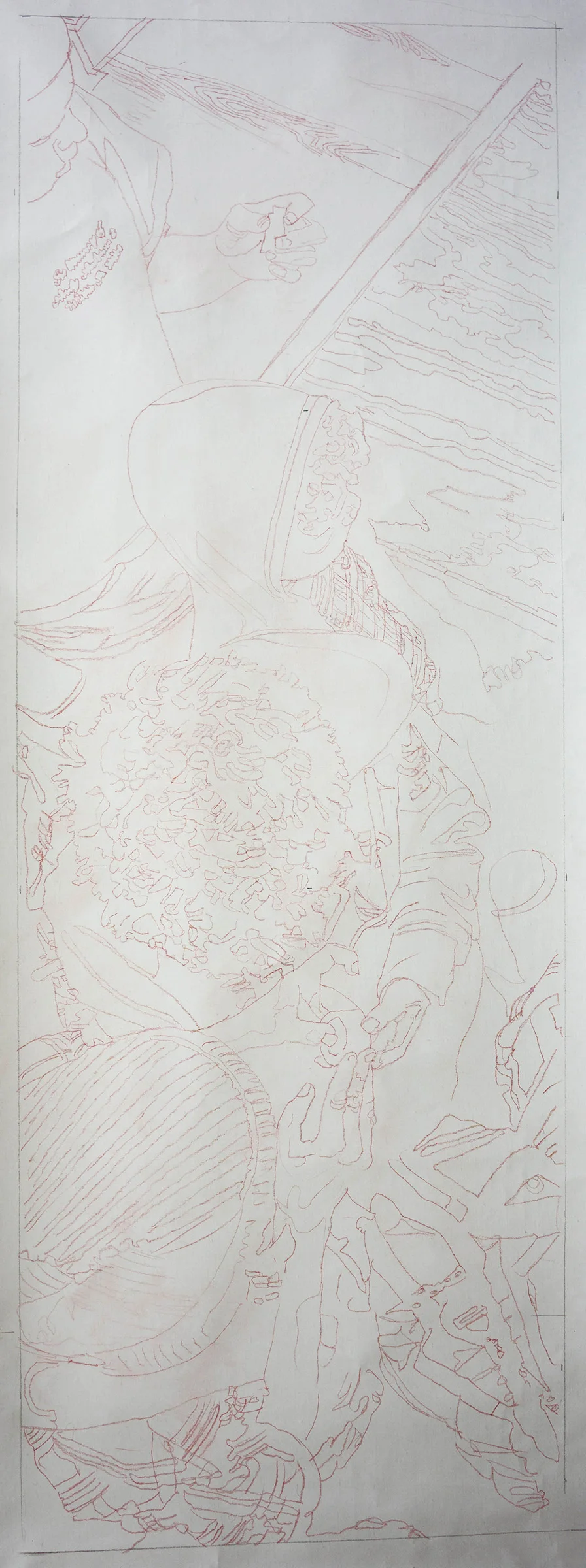 3:50 pm: it's about time i posted! just completed the drawing for parade 46, which is 56"x20." the image comes for photos i shot at the opening of steamshop, the makers space we've been helping birth in alamosa.