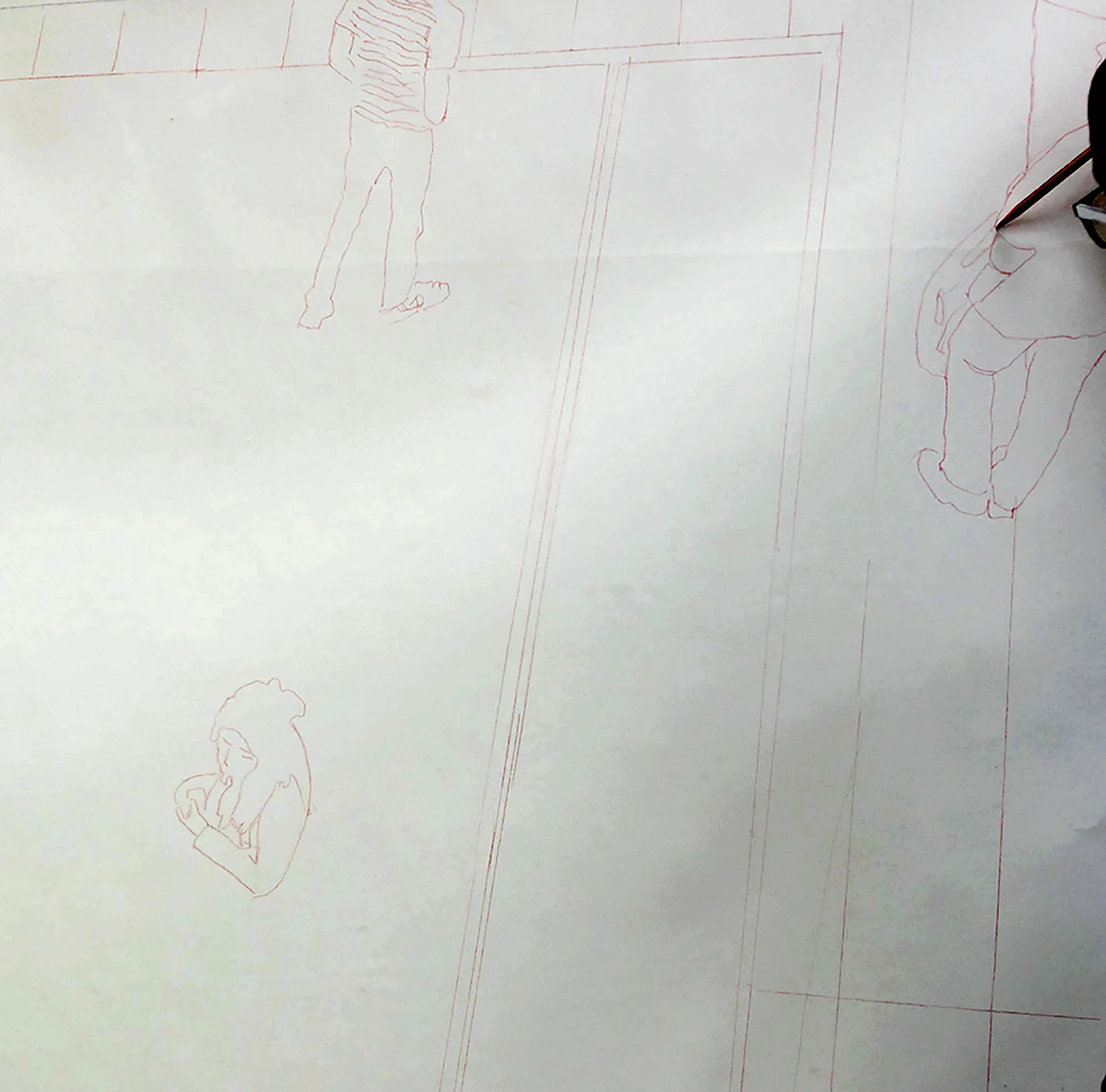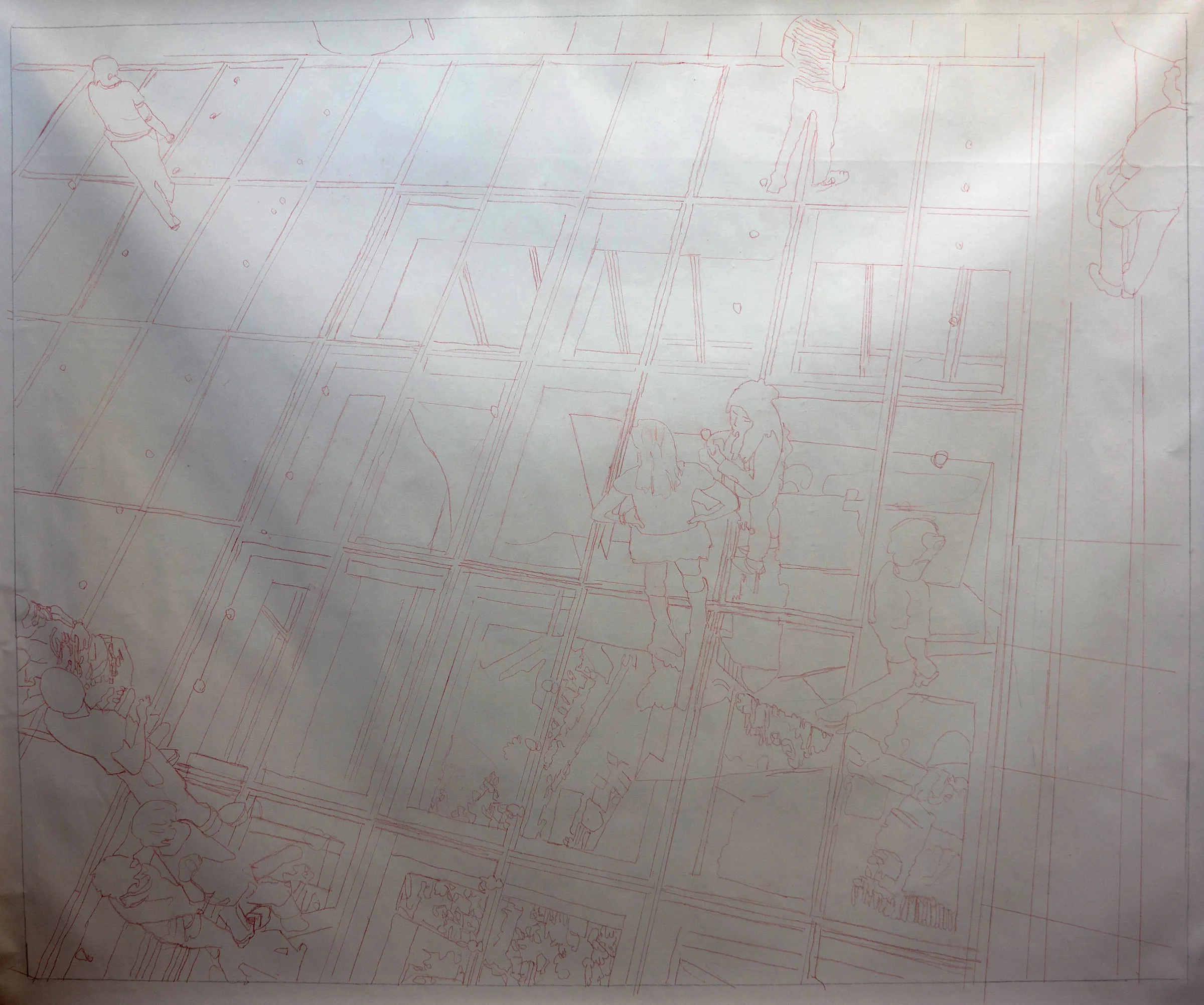 1:44 pm: the drawing is now complete and i'm about to stretch the 56x68" canvas.