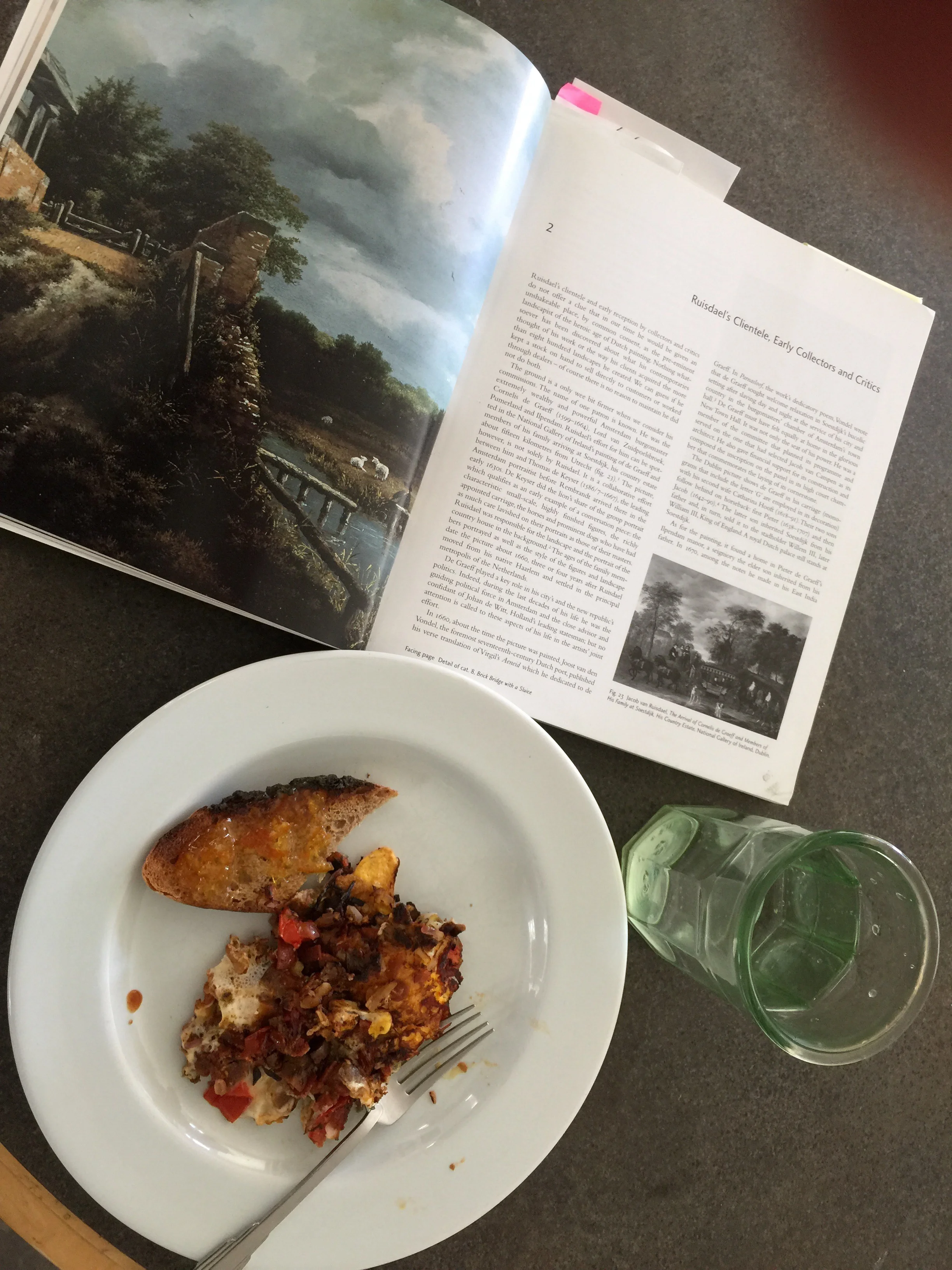 7:32: brunch today was with jacob van ruisdale, arguably the greatest 17th c. golden age dutch landscape painter. his landscapes have a quality, a combination of light, composition, unique introduction of figures, magical skies and crazy accurate depiction of plant life, still admired by botanists, that put him in a class by himself. under appreciated during his lifetime, his works can be found inmost of the world's major museums.