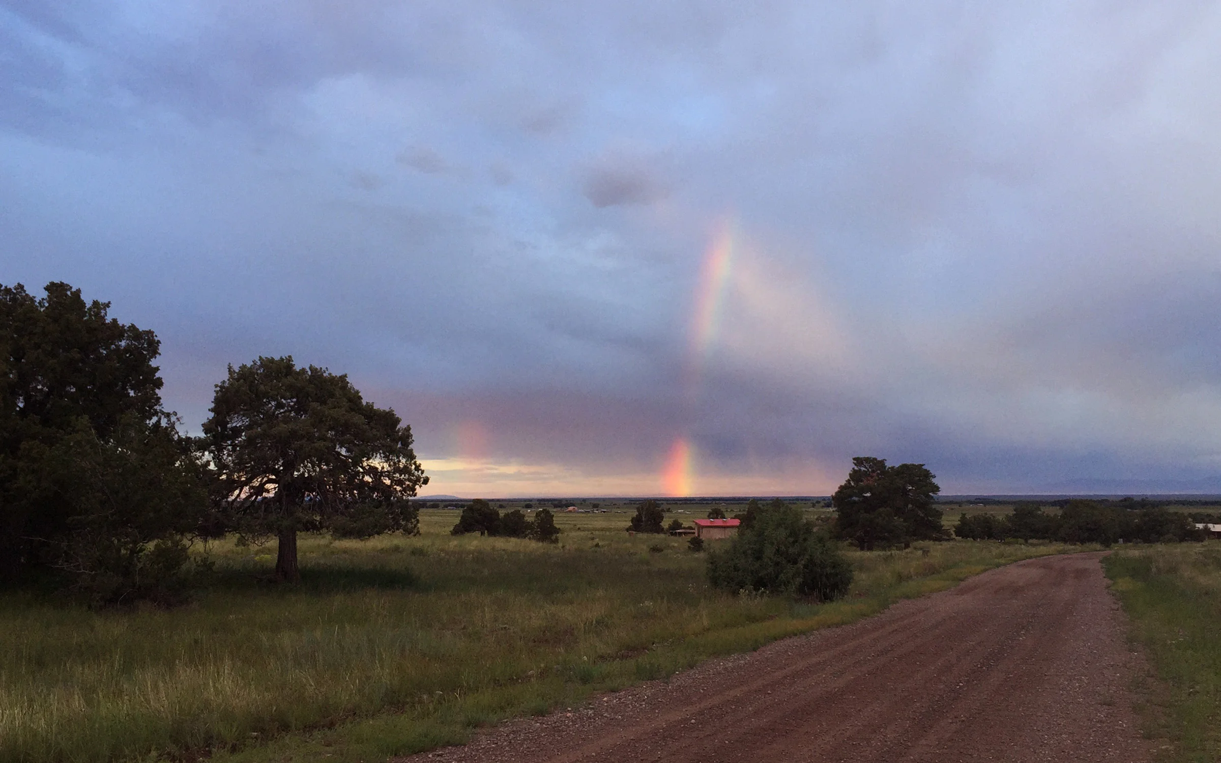 at 6:15 this morning, while taking our walk, we saw this double rainbow in the western sky above the san juan mountain range across the valley. we've seen many double rainbows here, but never one at this hour, before sunrise and in the west. we had more monsoonal rain last night, the temperature was high for this hour: 56 F creating ideal conditions for mosquitoes. the past few days morning temps have beenin the 40's: too cold for them.