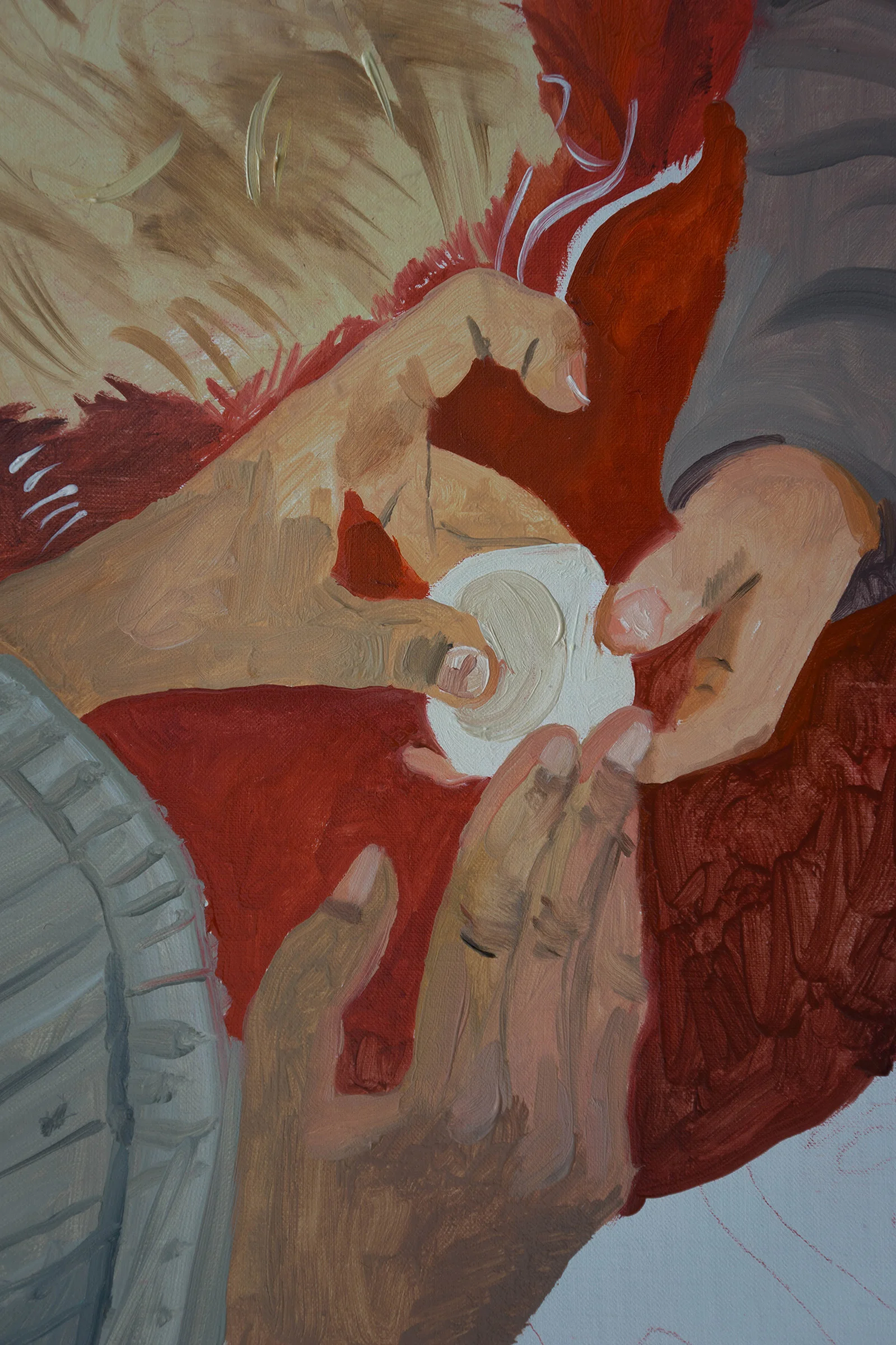 3:36 pm: i've stopped for today. i'm taking it slow with this one, and enjoying every moment. as soon as i start feeling tired and unable to give my full attention to each stroke, i call it quits. the trick, always, is to maintain the level of passion and engagement i feel the first moment i put brush to canvas.