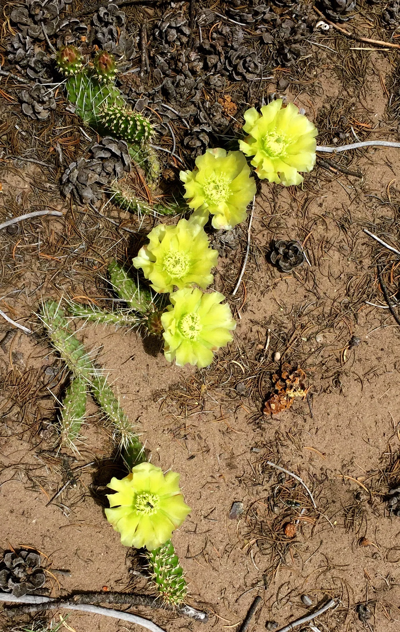 6:26 pm: i noticed this afternoon that our cacti, which have been half-heartedly blossoming for a few weeks, have finally burst into full bloom. this might seem to be of little significance to those of you in moist climates, but for us here in our high desert climate, it's a significant event to see this burst of color from the dry dusty soil.