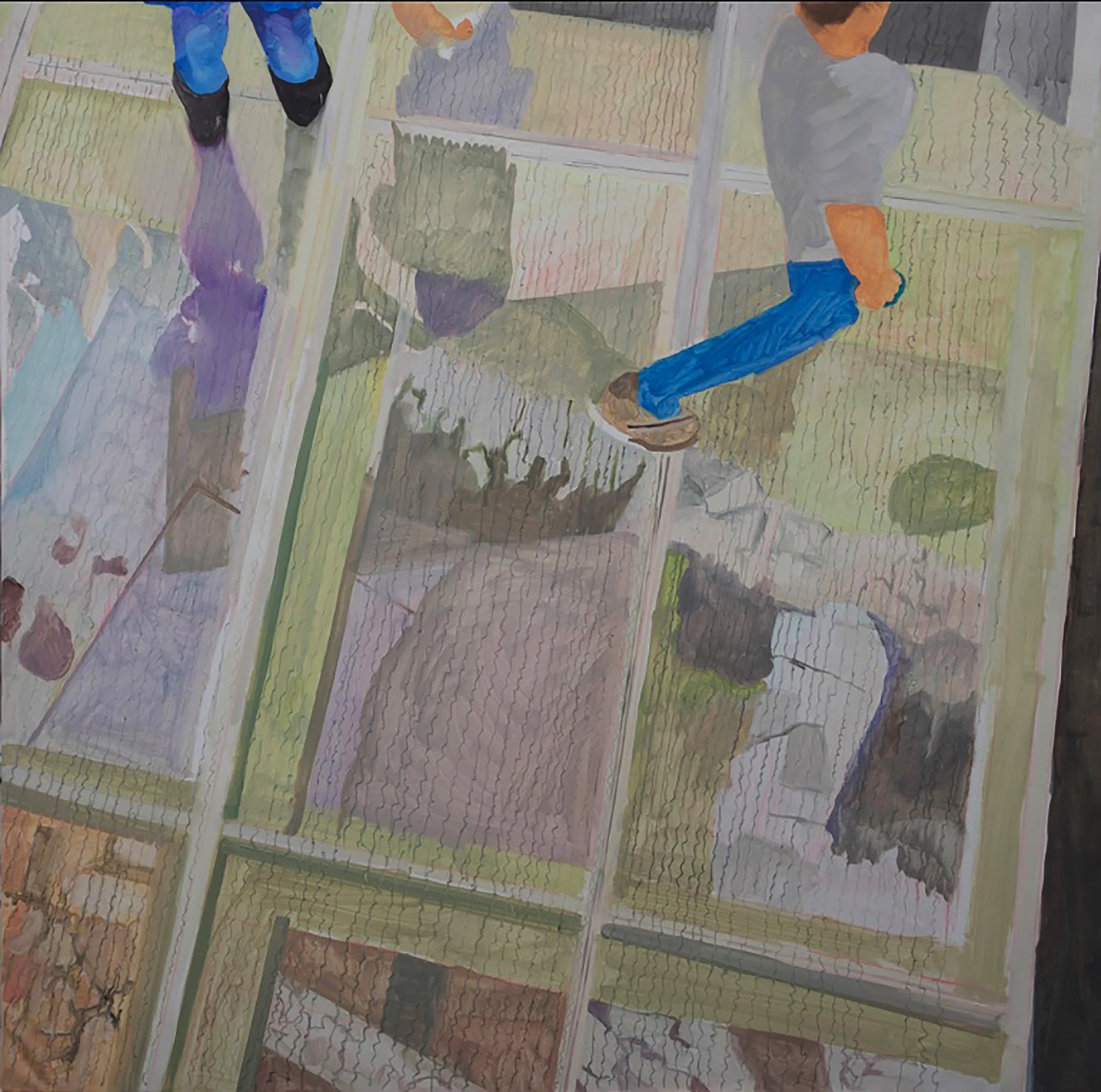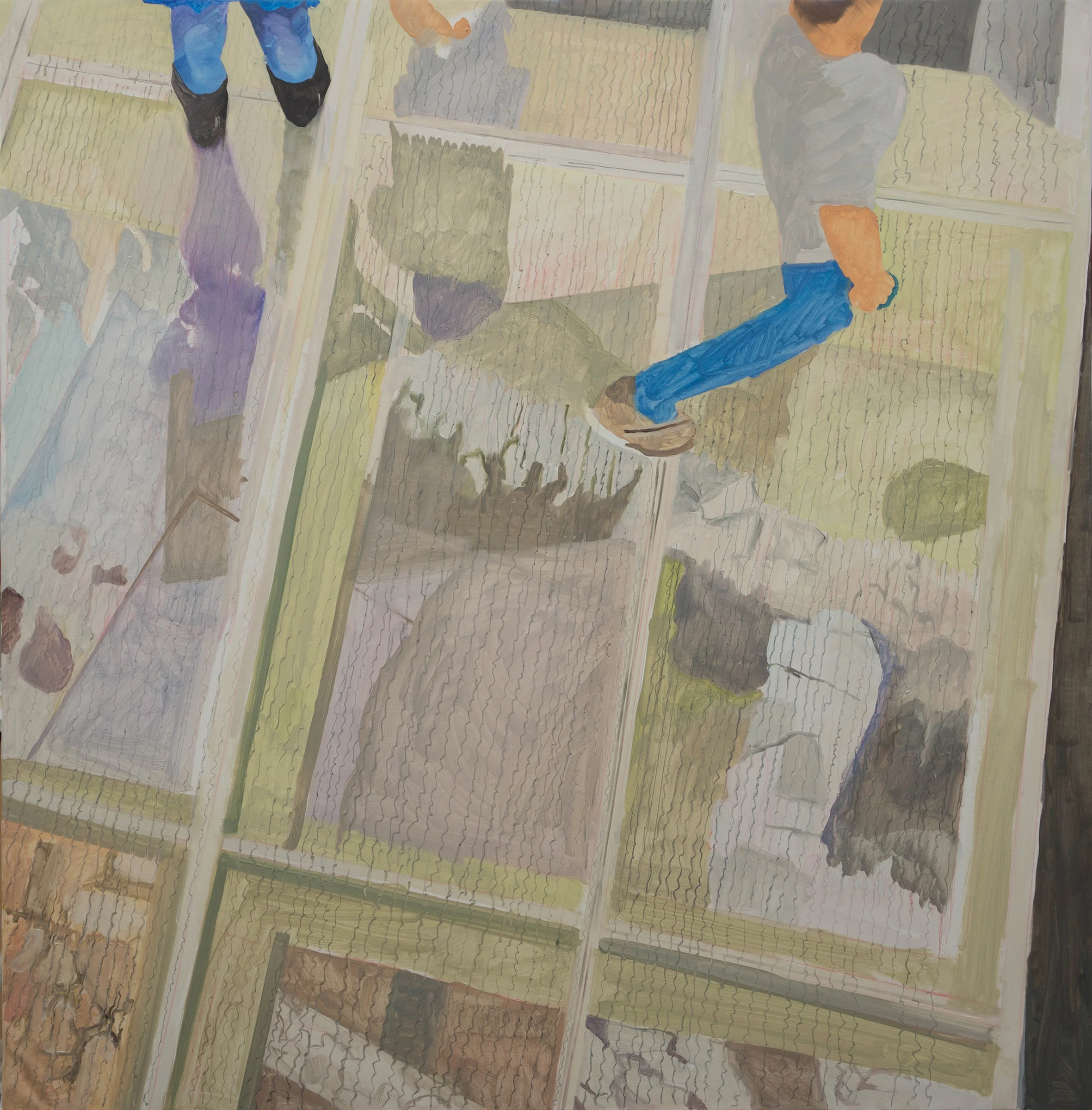 7:30 am: ABOVE: left-an early parade painting hanging in our house. it's 16x16" oil on portrait linen. it definitely points the way to more recent versions of the parade series, which will be shown in my upcoming solo show at gremillion & co. fine art, houston, texas. and on the right, our sky this morning at 7 am.