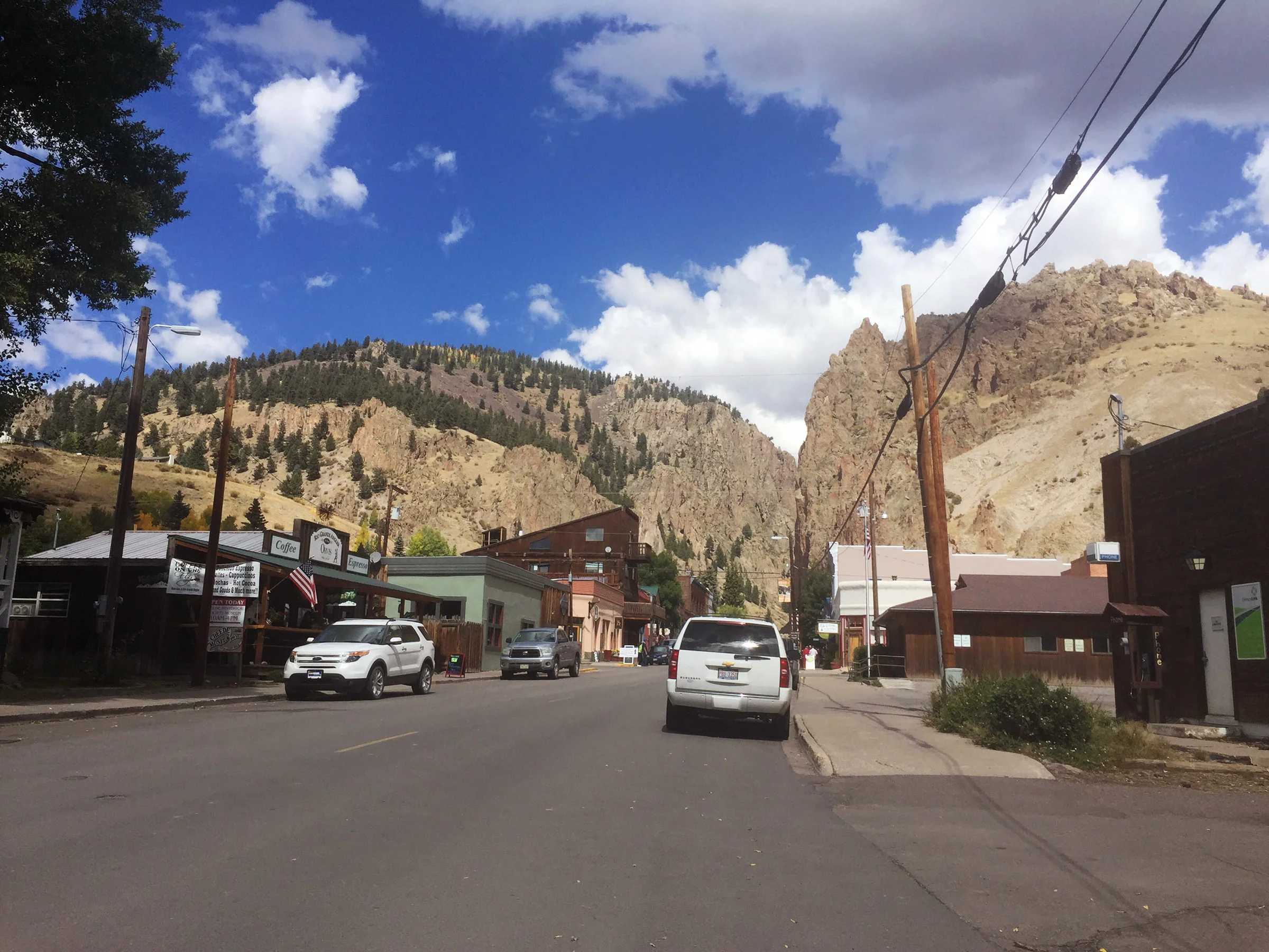 BELOW photos from the road and of the beautiful town of creede. the last one, on the lower right shows the coffee shop, on the left, where i'm currently sitting.