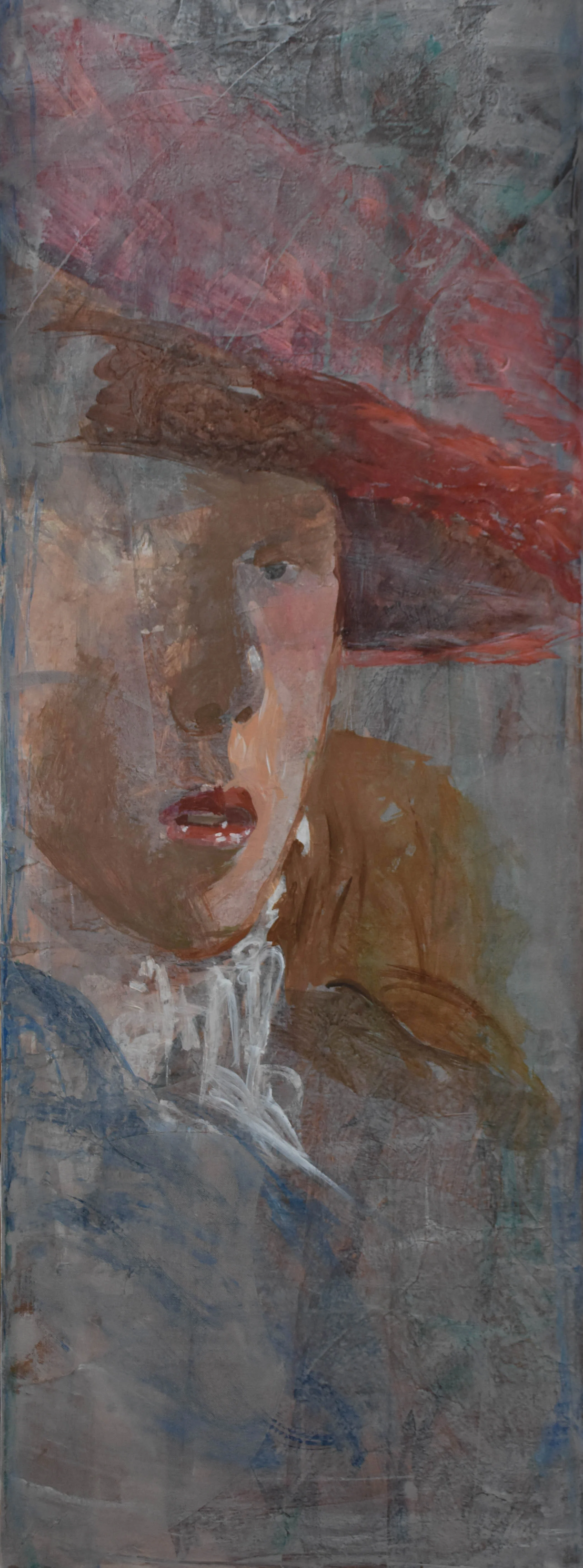 11:20 AM: after living with these grey series paintings for over a month, i concluded that two of them needed re-working. the first one, grey7/girl with the red hat needed toning down of the blues and reds. i worked on it just now; below are the before and after pics: