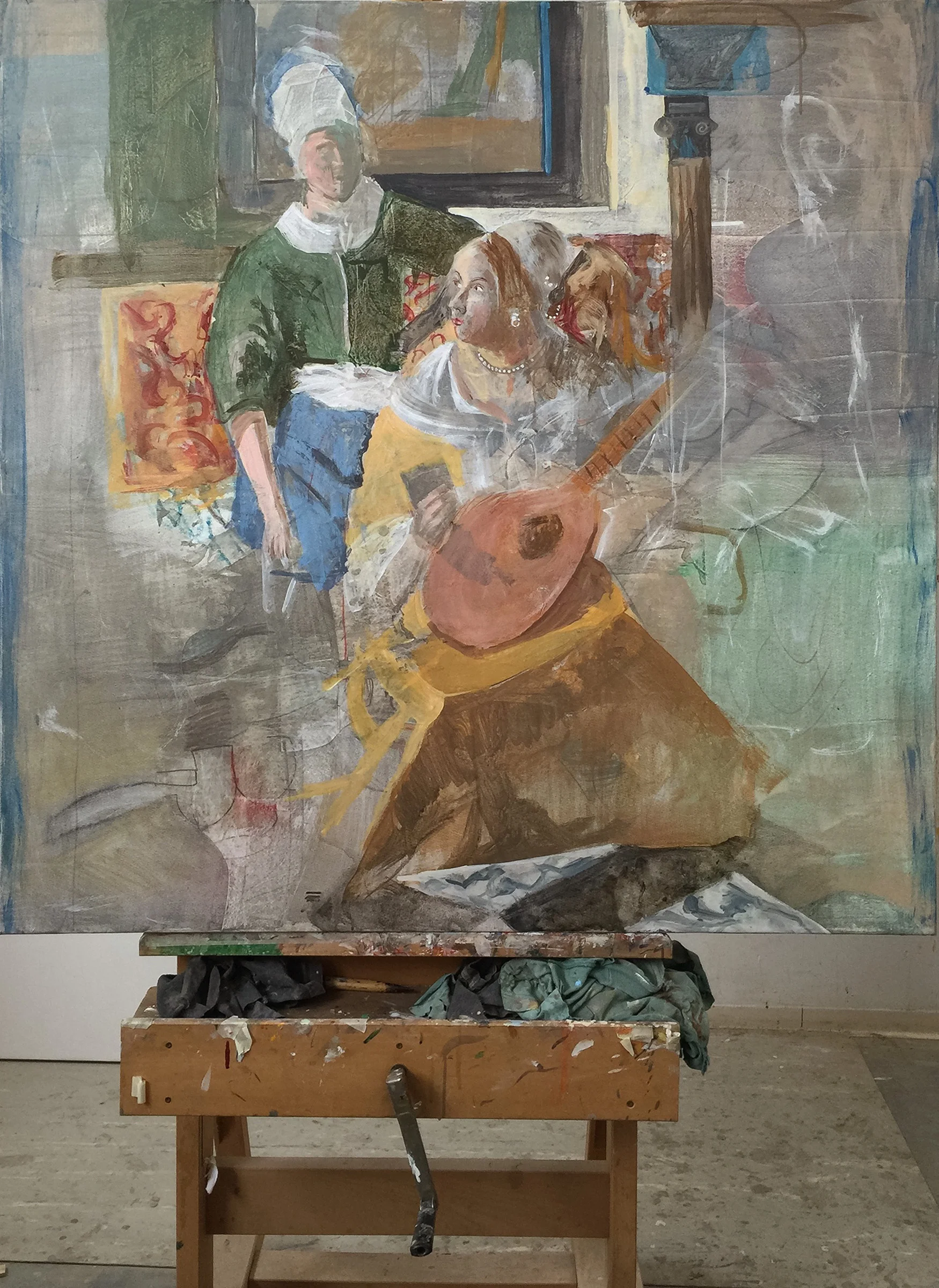 4 PM: on the right, here's how the painting looked on my easel as i left the studio. i'lll resume work in a week. on the left, 2 days ago.