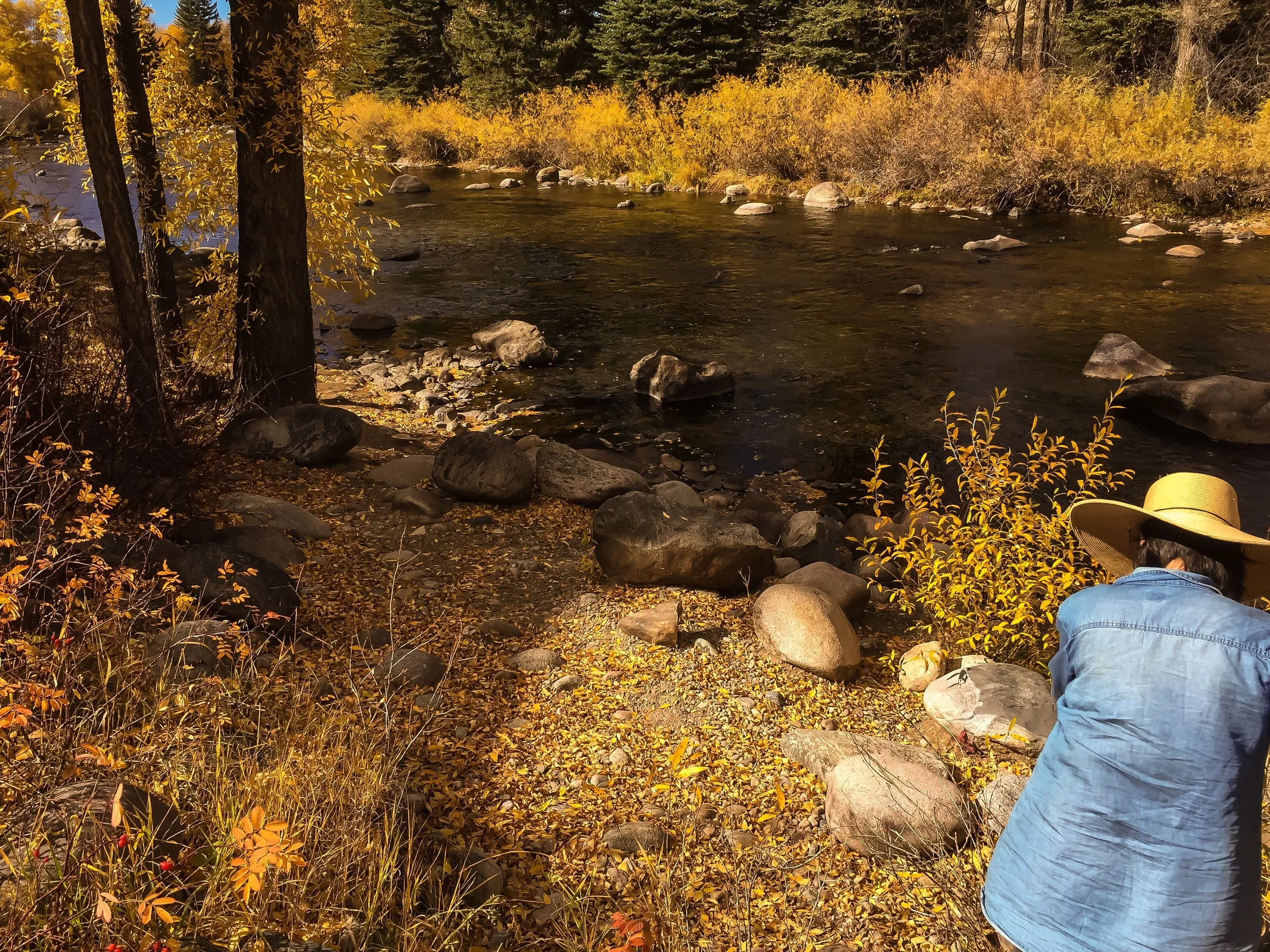 this weekend we have off from school. so this afternoon we took a walk along eagle valley trail, which runs alongside the creek. i got some great ideas for paintings from looking at the rocks, which are quite different from our crestone rocks but no less strikingly beautiful. filled with swirled patterns many of which remind one of brush strokes and dotted with yellow lichen, they are at their best in the afternoon light. tomorrow we'll go a bit later, when the angle of the light might be even better.