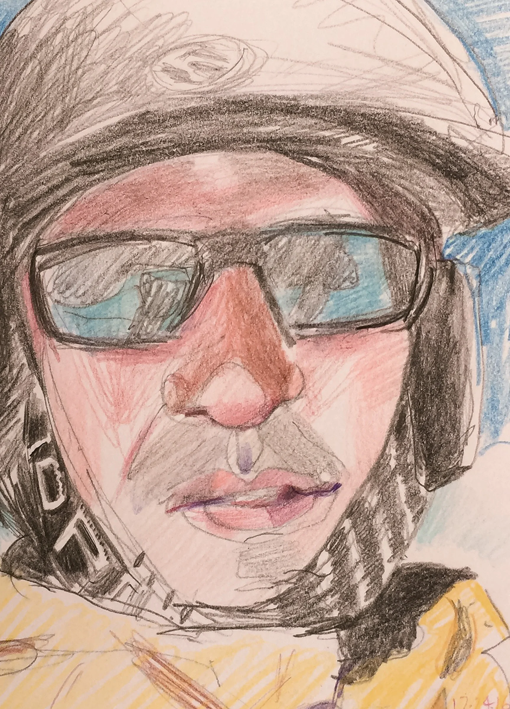 12:34 PM: started the day with my 9th, out of 13, colored pencil portrait of one of the speakers at next month's TEDX event in vail. he is john kedrowski, PHD.