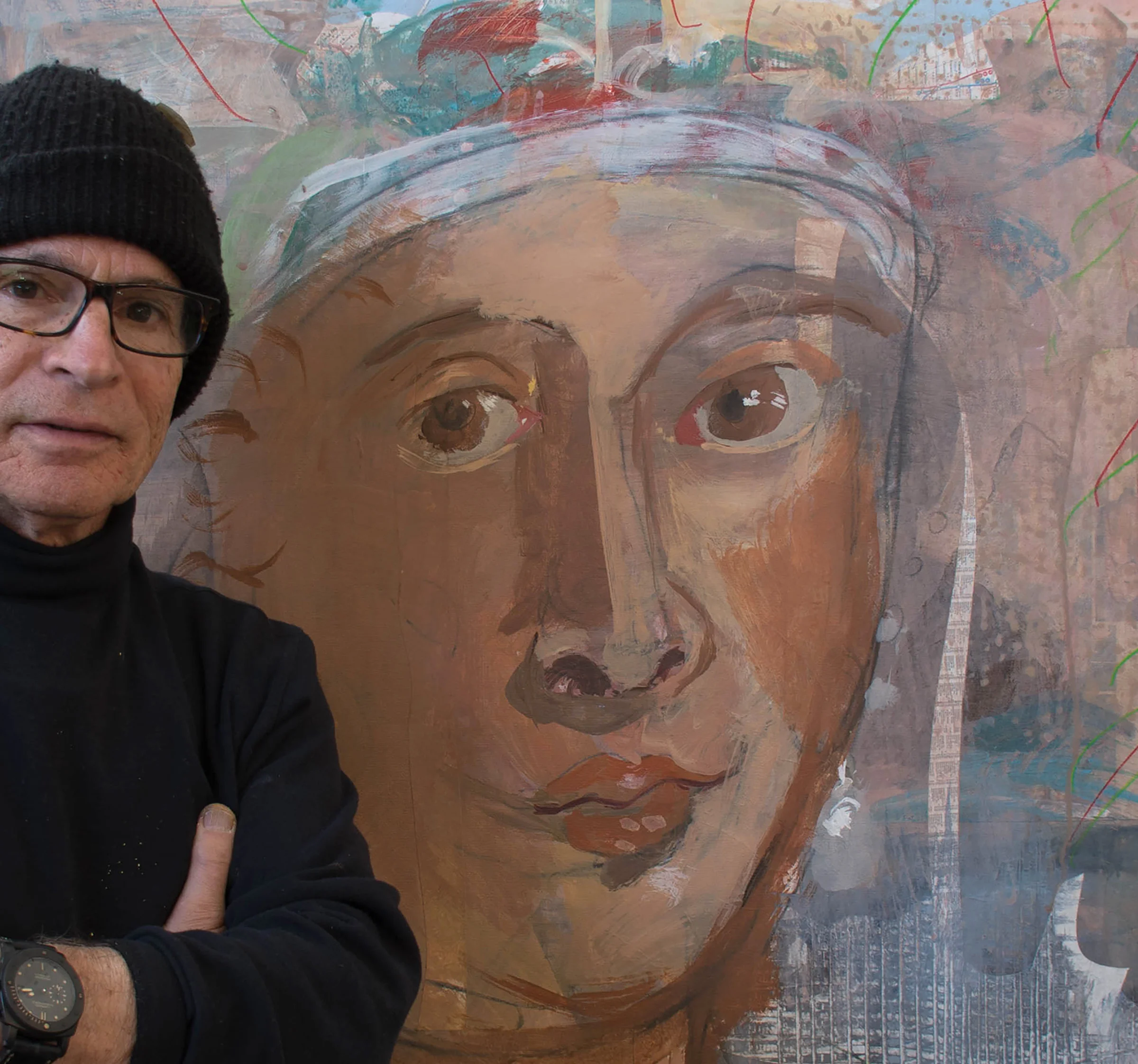 2:34 PM: as i said yesterday, after looking at the gaze series in the house for many months, 3 of them stood out as being unresolved & needing work. so today i began work on gaze 14. it began somewhat timidly and rapidly became a total re-work, with a different image, drawn from the same rubens portrait i was inspired by for the recently completed gaze 36.