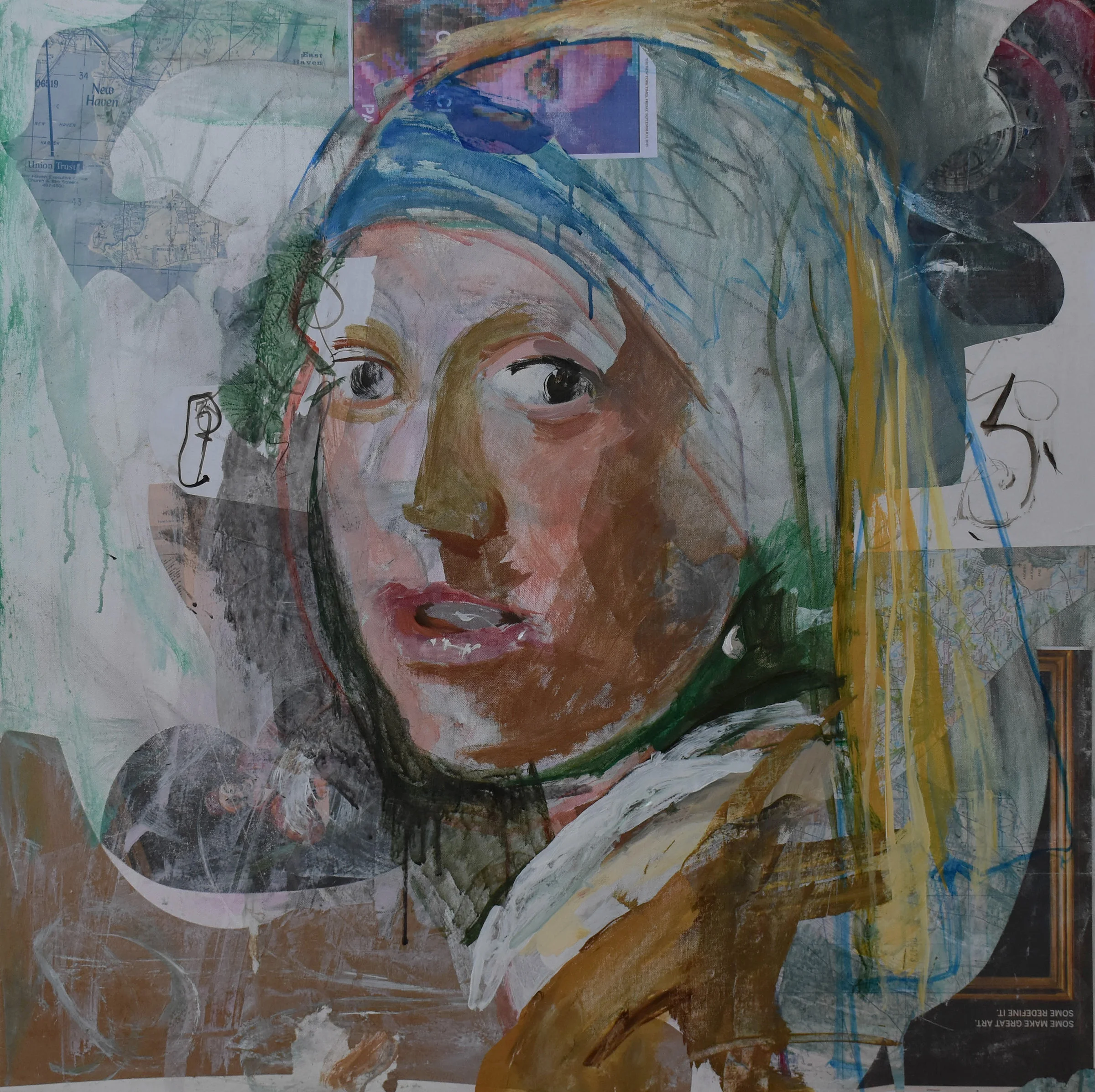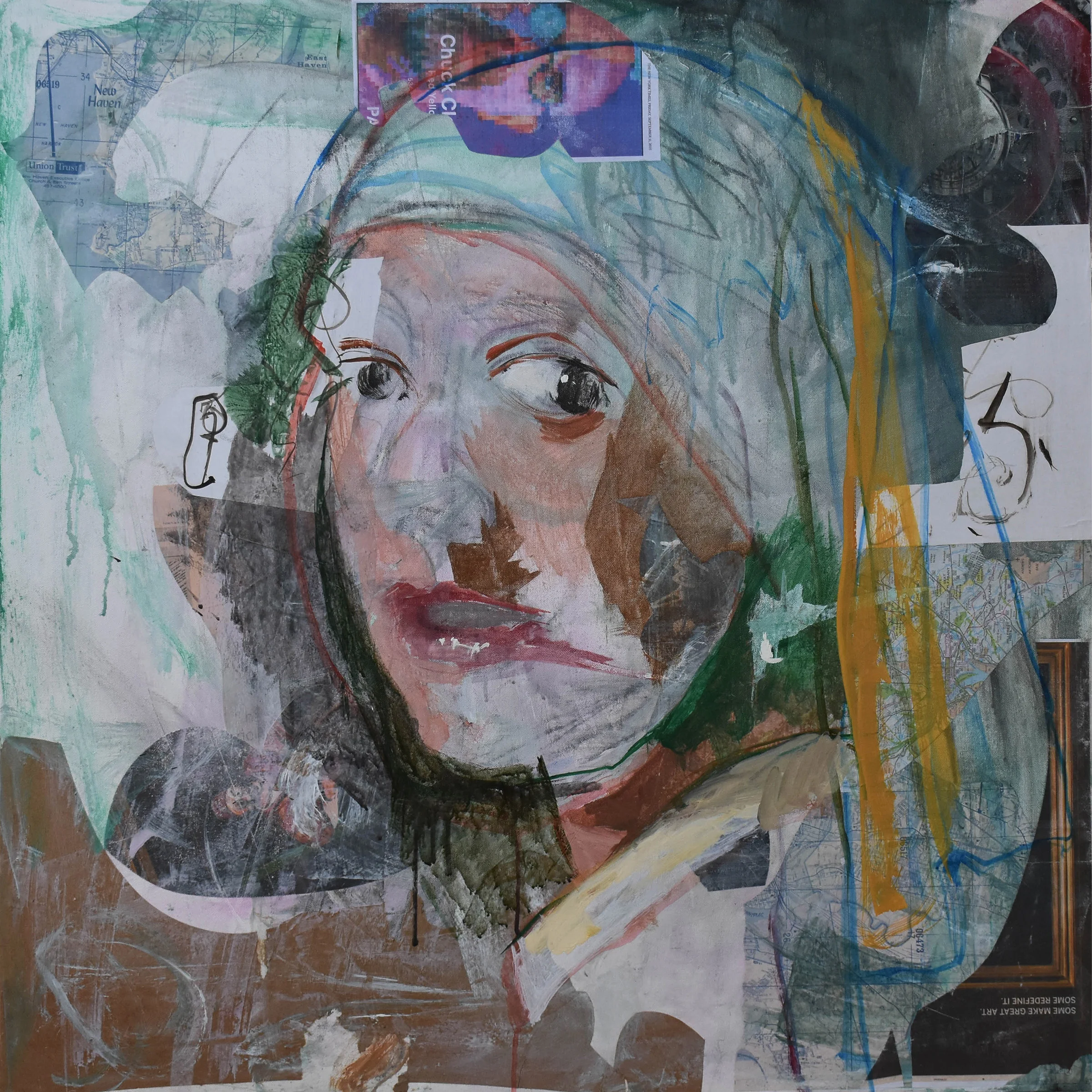 *scrumbling: a word i made up to describe scraping/rubbing/dragging the palette knife over the surface, then painting back into it. the eye, rather than getting stuck on the details, such as her lips or hat, moves smoothly across the picture plane. there is more choice, more freedom on the part of the viewer to alight here or there. the mind/eye fills in suggested details as it fabricates it's own meanings. one has the capacity to dream more easily, while at the same time being able to notice and appreciate the painterly passages as painterliness.