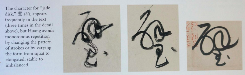in the two examples i gave: huang tingjian (1045-1105) and deKooning, accidental may not be the most accurate word. of course there was nothing accidental in huang's calligraphy. what sets him apart are his painterly, gestural marks. he varied them based upon how he was feeling in the moment and the meaning of the word or letter he was depicting. you get the sense his whole body was engaged. in one case, in order to emphasize an important point, he made the first letter of a word the entire height of the page.