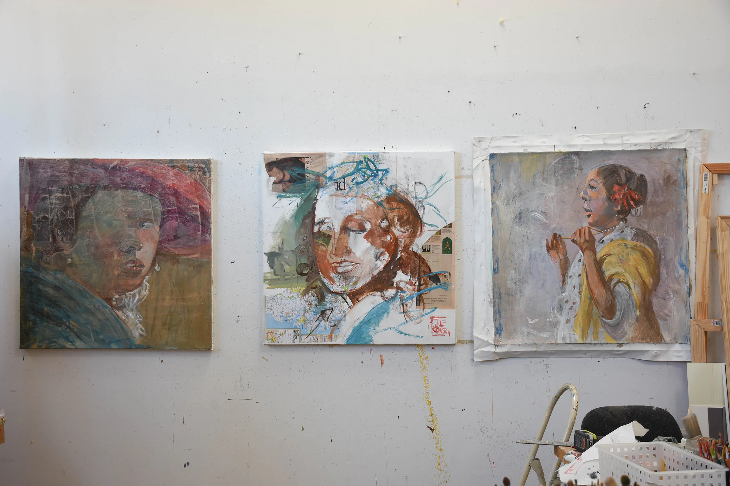 12:40 PM: i entered my studio this morning for the first time in a week. when i began scanning the paintings on my studio wall, one of which (the middle one) i had planned on working on today, i realized right away i just wasn't up to it. in that moment, i realized just how much focus and energy painting demands. my body let me know immediately.