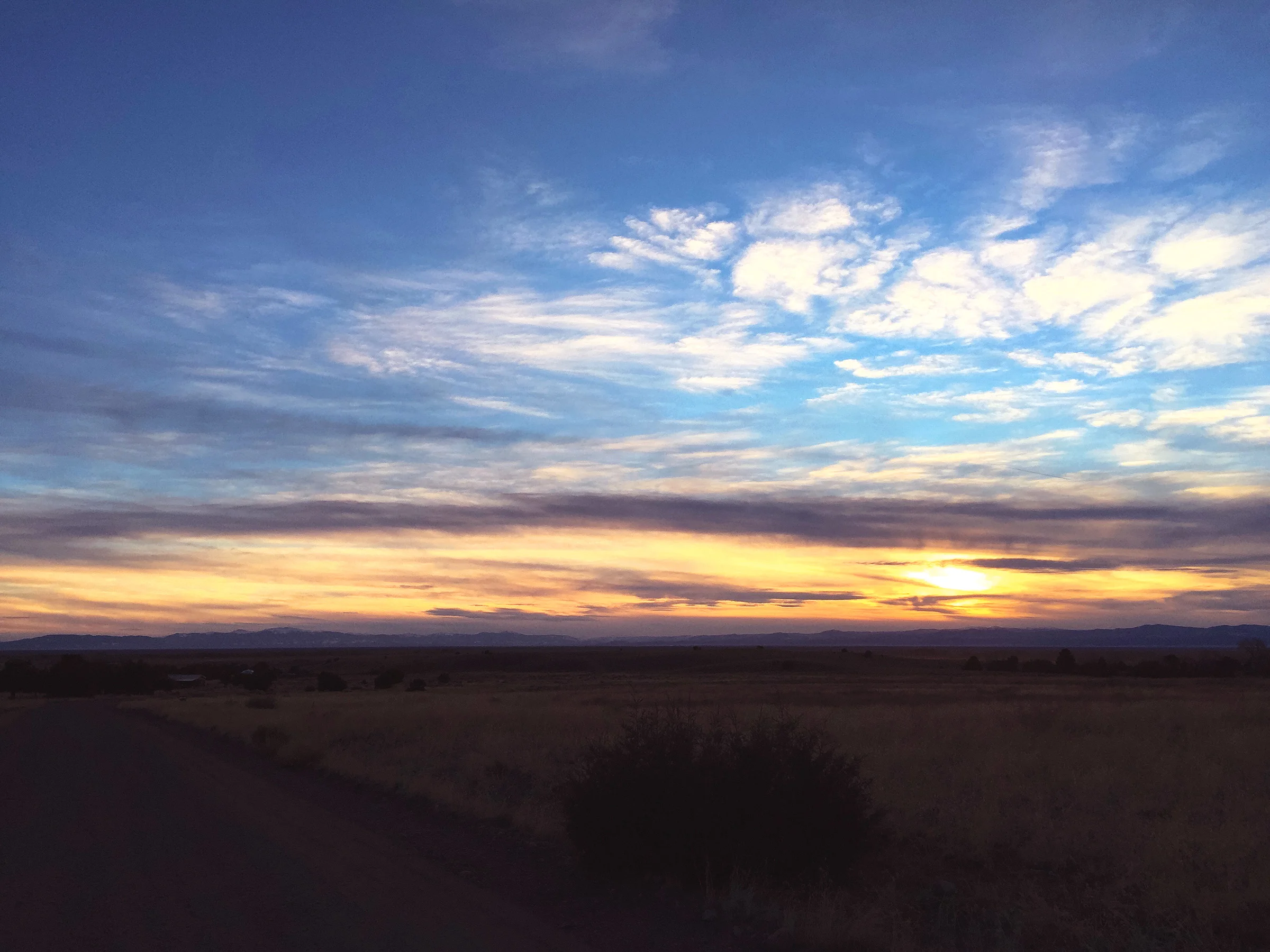 6:49 PM: we took a short walk just opposite our house at sunset, enjoying the vast expanse of our SLV valley. the valley floor is 7,500 ft. & our house is at 8,000 ft. i decided today, because of my post concussion lingering symptoms, to do some works on paper for the next few days, which requires less physical energy than the larger works on stretched canvas.