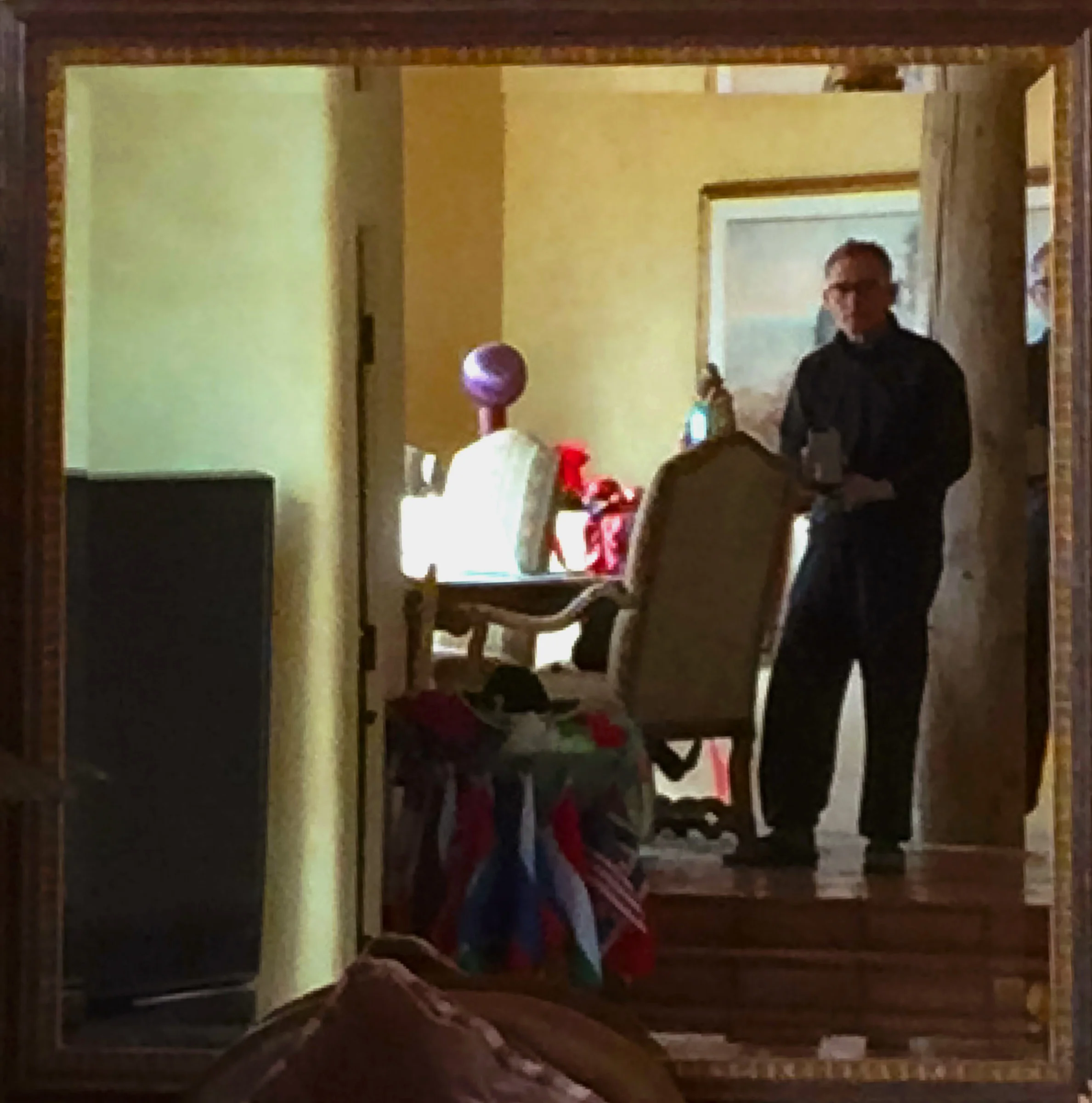 BELOW: looking back: january 2, 2016, at work on grey 6/the love letter and the completed painting on my studio wall.