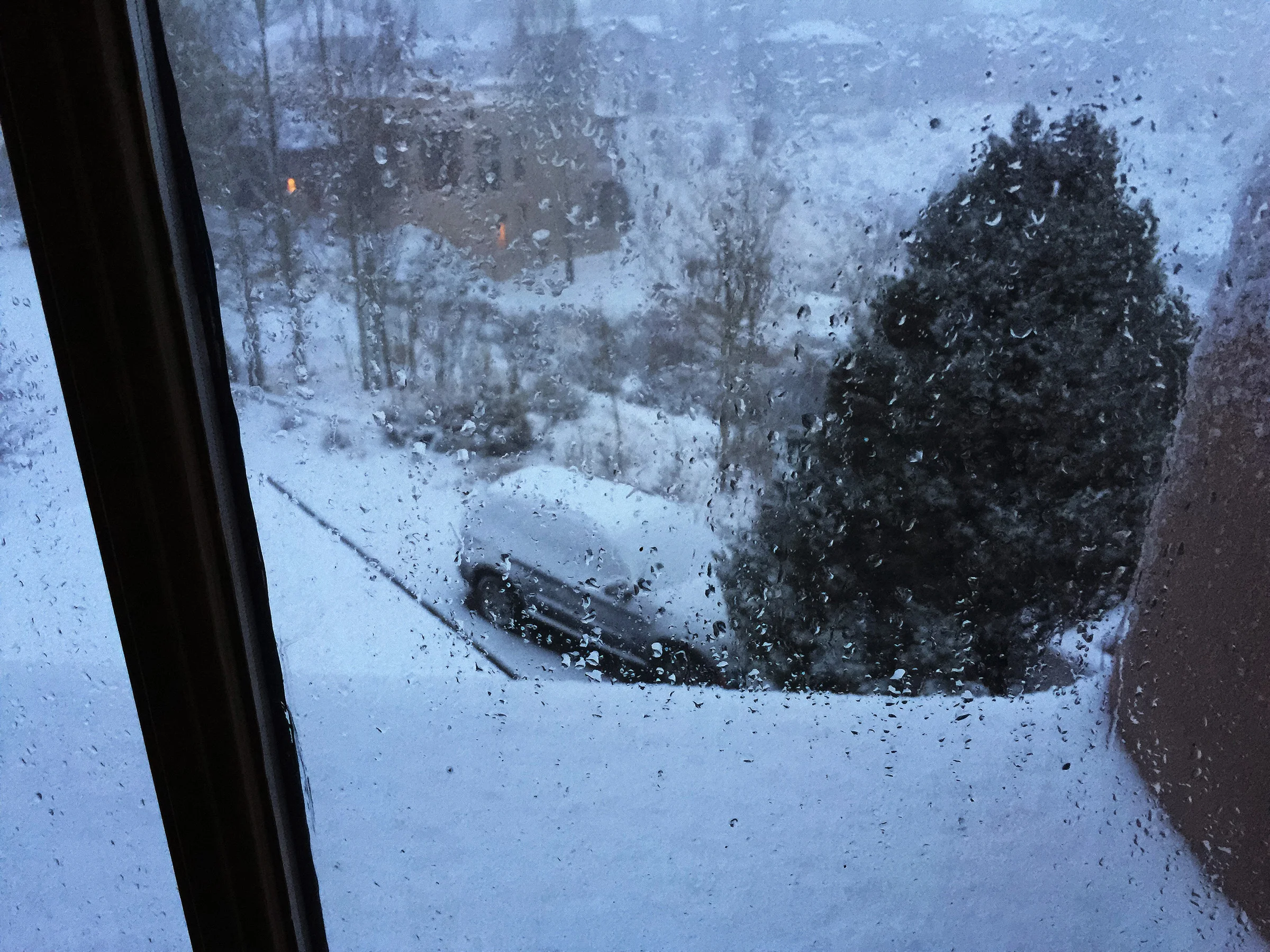 we woke up to 4 inches of new snow, with high winds and icy and snow packed roads.