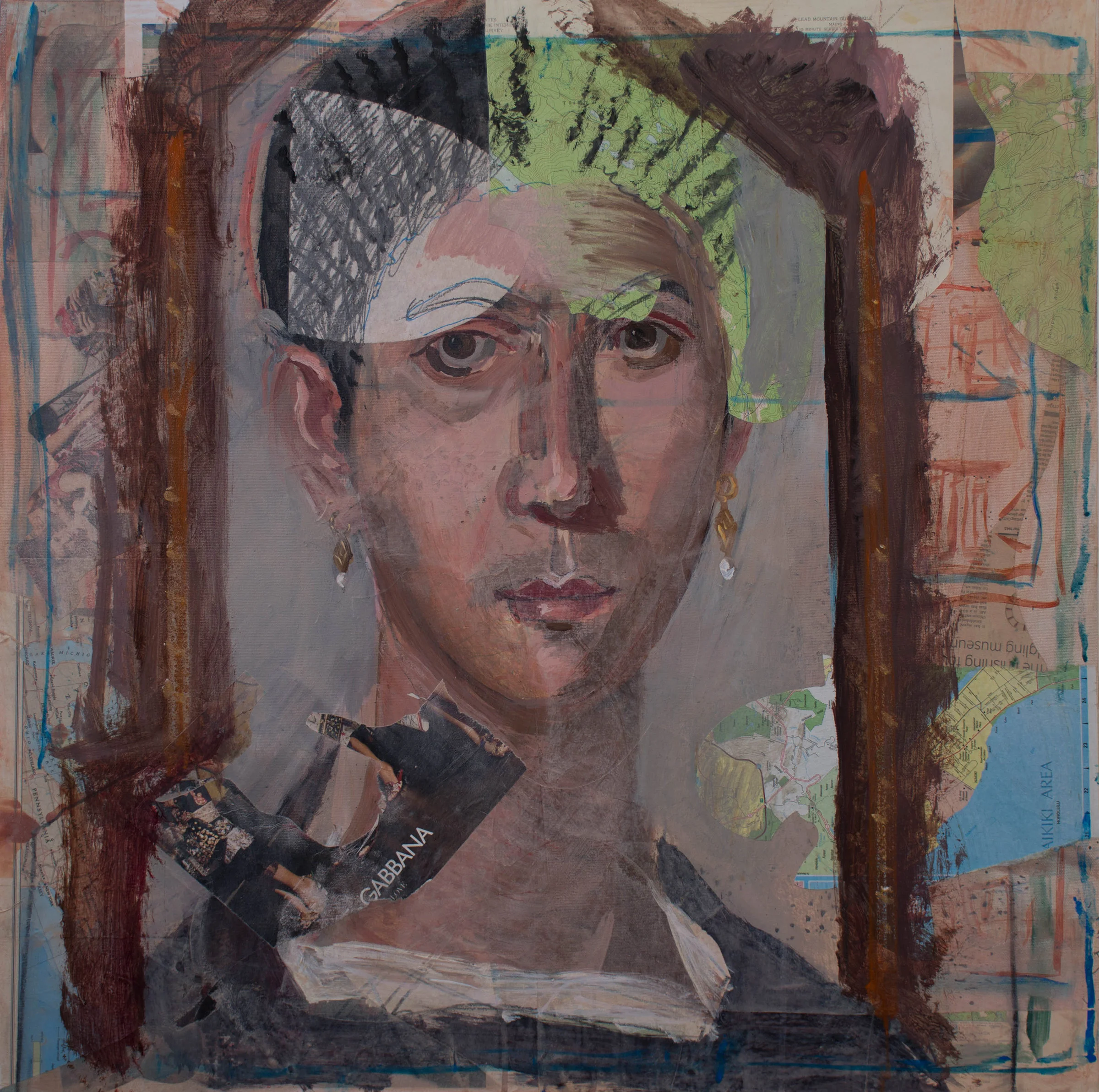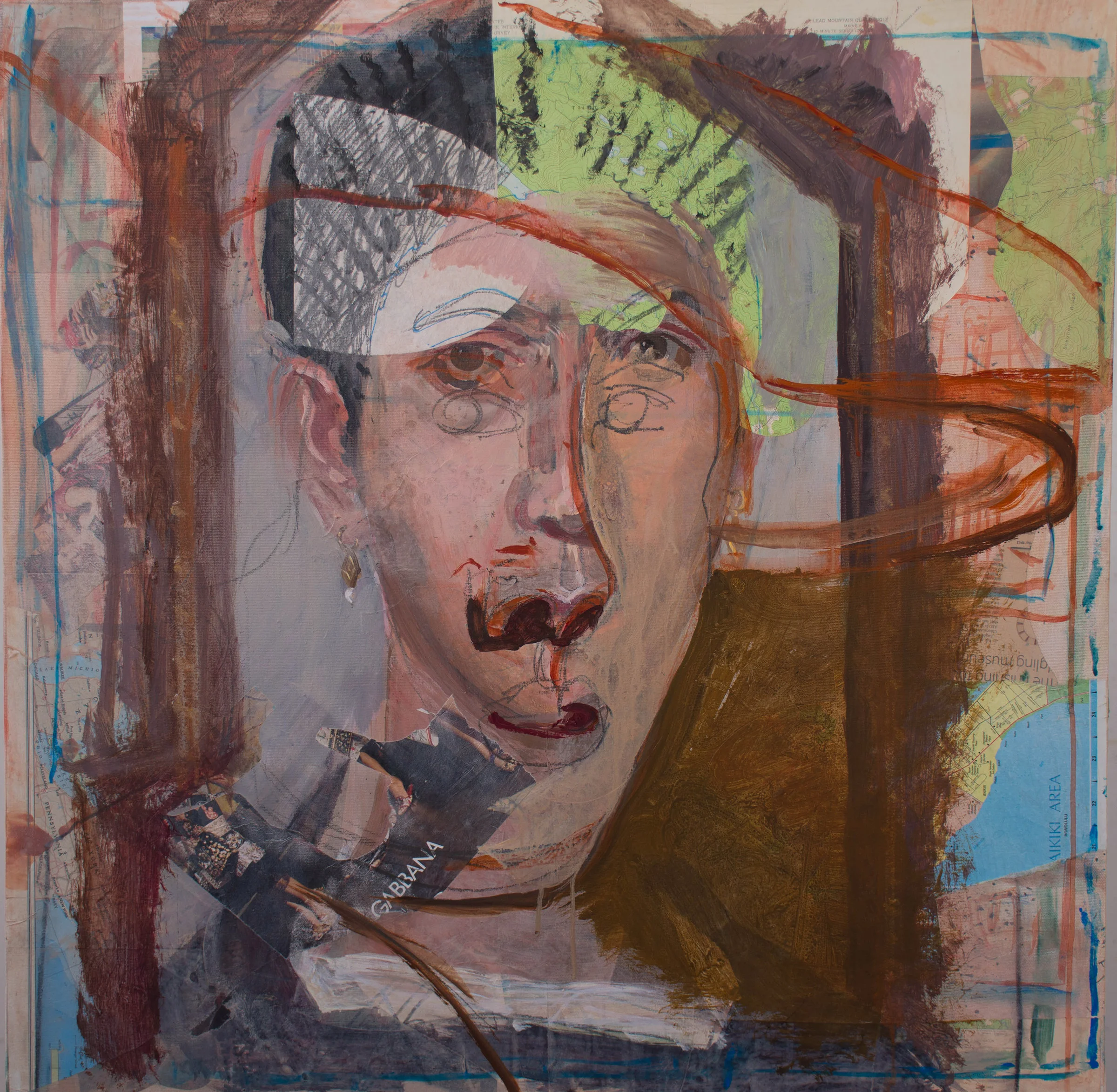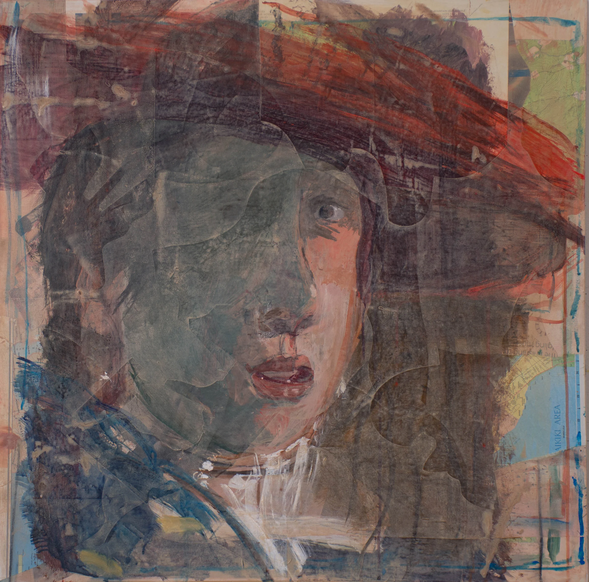 4:25 PM: that said, (see immediately below, 4:22 post) here's where the painting is currently at. another version of the girl with the red hat, this one is perhaps the most advanced yet. it definitely needs more work, but it's a strong painting as is. you can always tell when something in the composition is essential for the integrity of the whole. so for example, imagine removing that bit of blue in the section of map on the lower right. the entire composition would fall apart. none of these elements are calculated, and rely entirely on my unconscious, or gut. and that's something i love about the work i do every day.