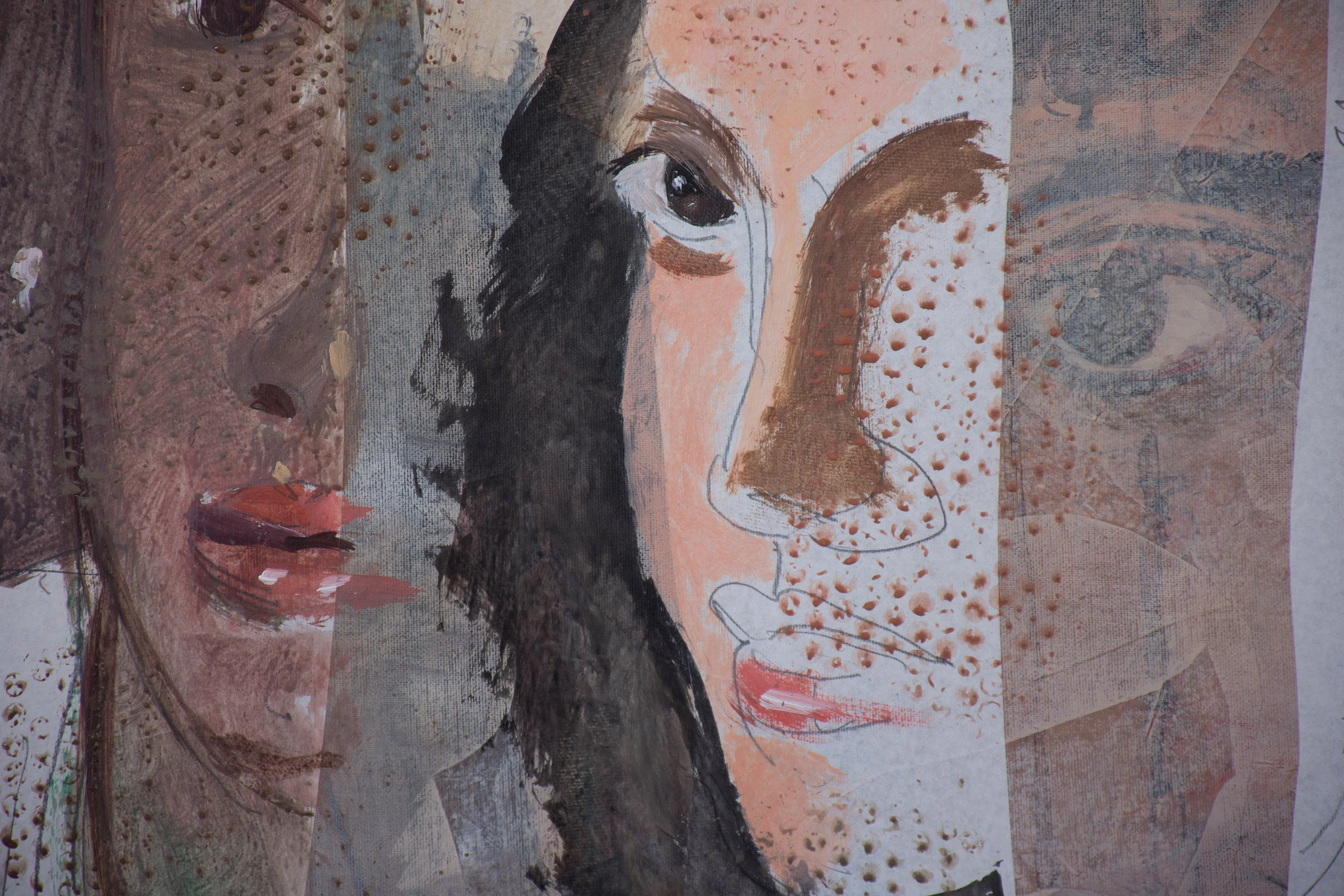 2:16 PM: grey 24 is in an interesting place right now. there are some cool solutions, but it still doesn't have an identity; a persona. the two fayum eyes subtly peaking through point to my focus on the gaze, with being too obvious. but in the end it's all about the picture plane and the space. right now, i'd say there's a battle going on between the 4 main elements, and i need to be willing to sacrifice the idea for the greater good of the whole painting.