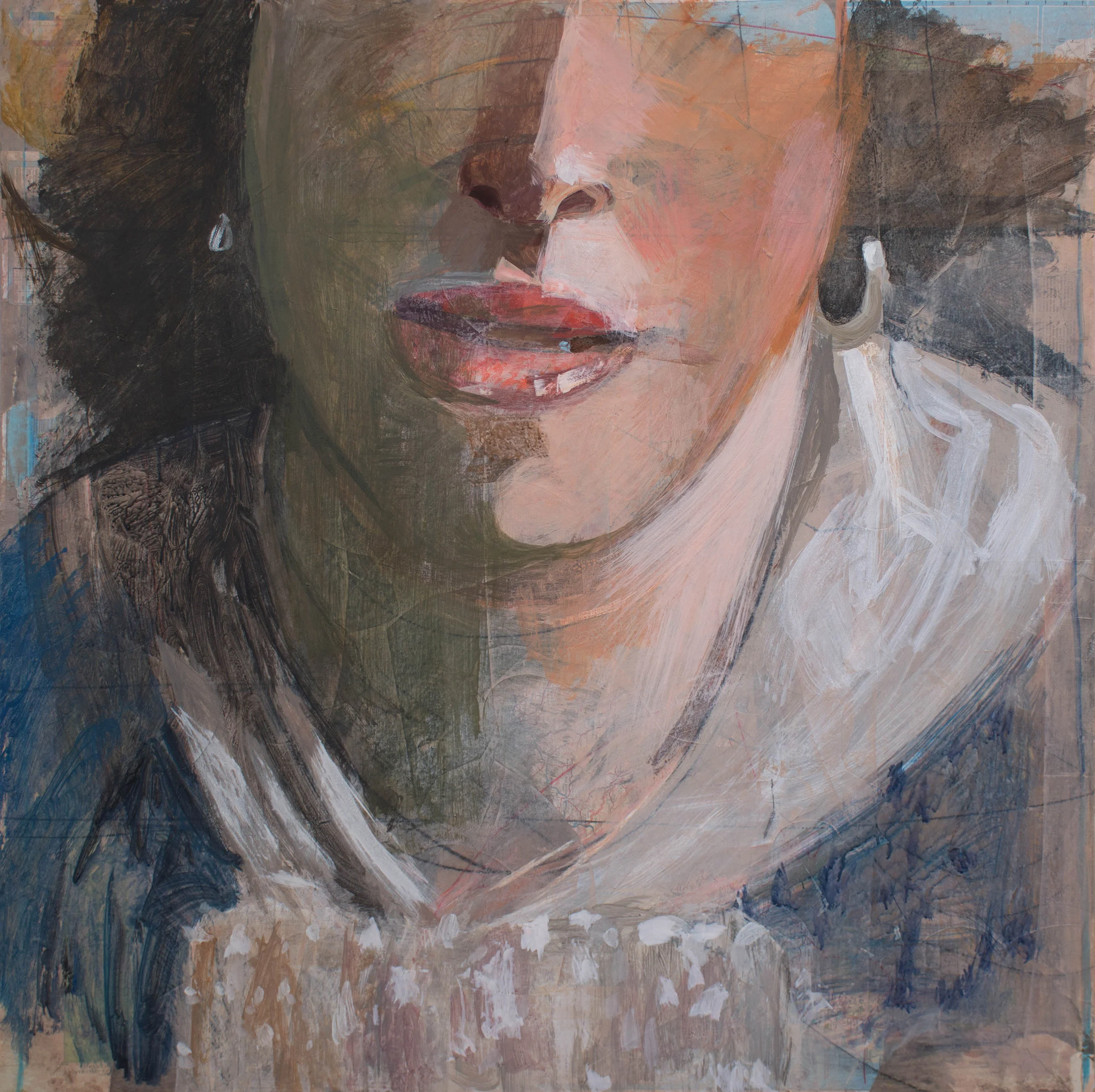 2:11 PM: the lip tweak ended up going further than just the lips, and included most of the area of the face & neck, as well as her collar. as a result, it's a much stronger painting, and has more feeling and immediacy. i actually feel like our 6am walk was a big contributing factor. we don't speak at all during the time we're walking; today about 2 hours total, other than those 2-3x we take breaks. the environment of the creek, with it's torrent of snowmelt roaring down the creek bed; the sun breaking forth over the peaks at around 7 and raking light over the landscape; the incredible rock people on the trail and on either side puts me into a reverie that lasts the entire 2 hours. brings me back to myself and allows an unplanned, unstructured contemplation of the work i'll be doing when we return.