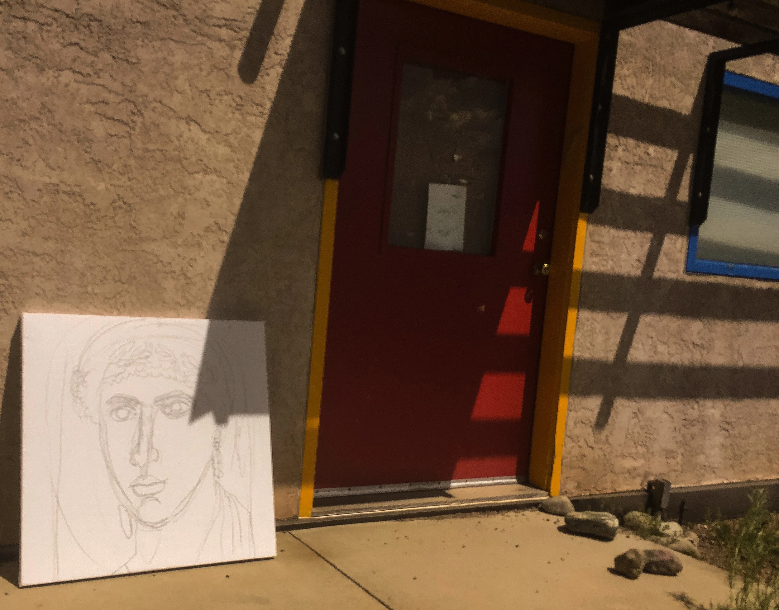 3:03 PM: gaze 26 drawing has been sprayed with fixative and is drying in the sun.