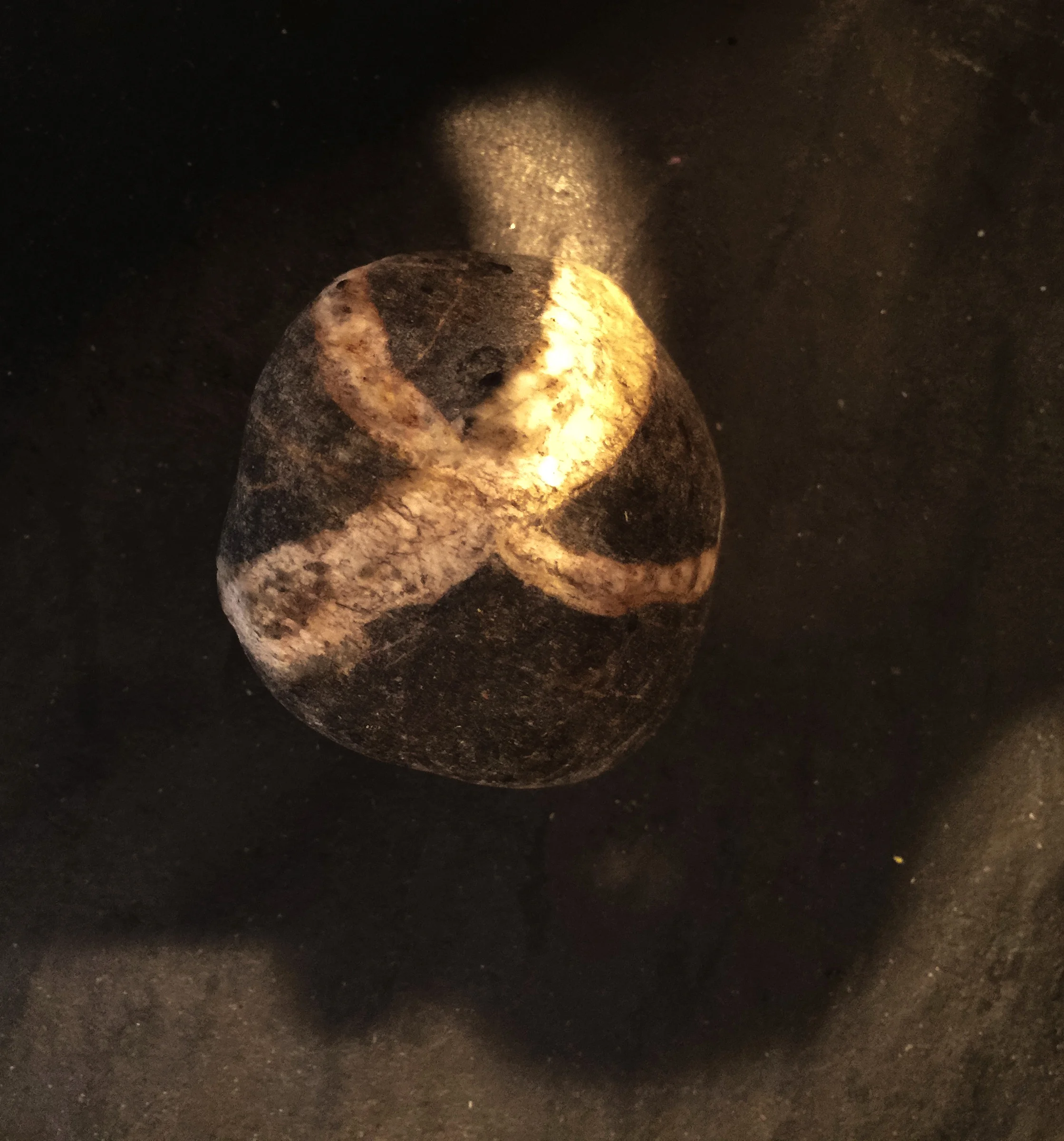 this rock, bathed in morning light, sits next to my roaster on our kitchen counter