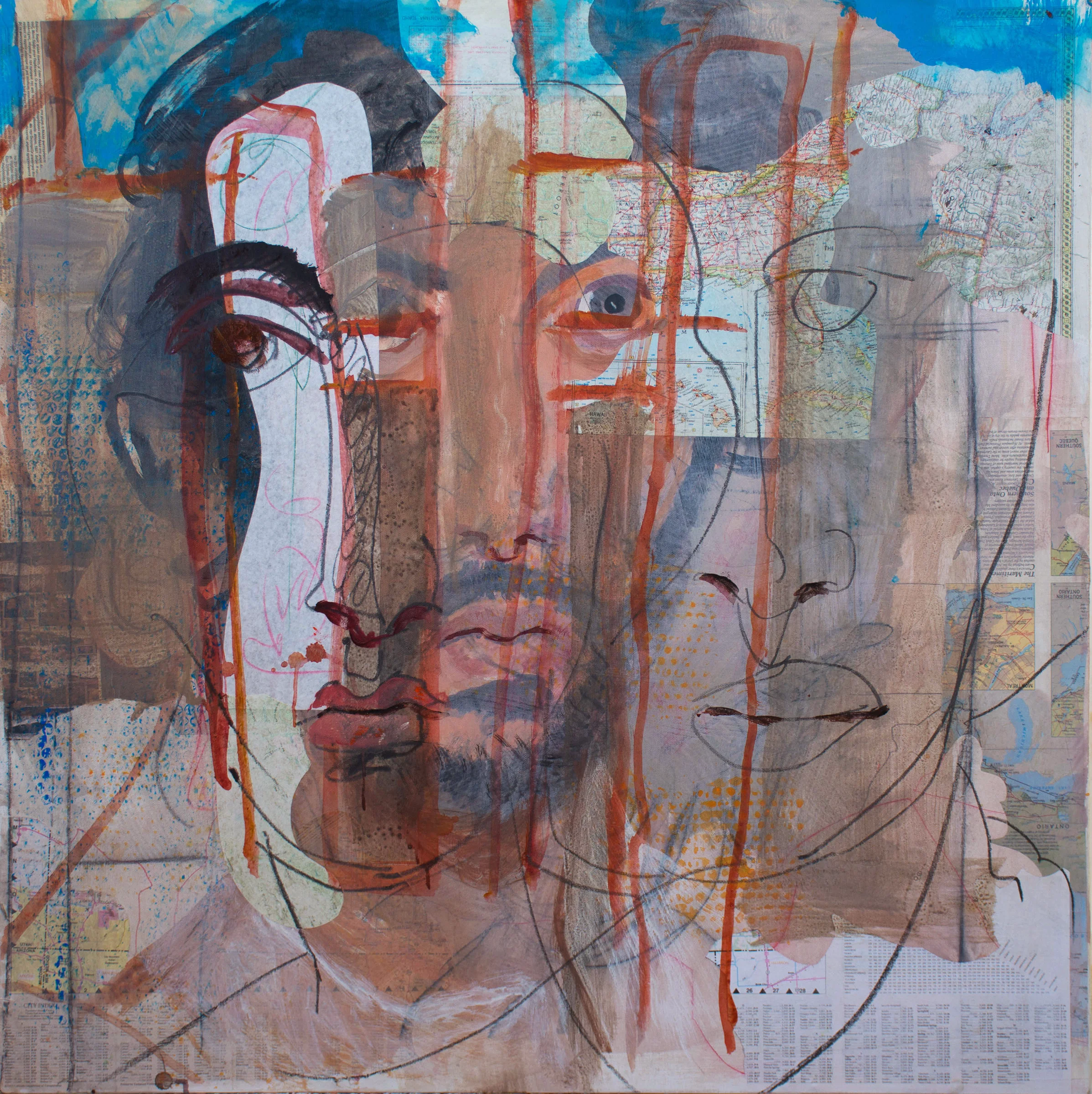 3 PM: stopping here for the day. gaze 28 needs a rest, as do i. it's definitely in a better place than it was a few hours ago. the abundance of texture in this one perhaps comes from looking at my bonnard book a lot lately. i am less and less taken with large faces that dominate the picture plane. last month i experimented with collaging vertical strips of off white paper on the canvas, creating 2 paintings; gaze 21 and gaze 23. these strips became dividers for a series of cropped faces. it was interesting for me to have these partially cropped faces interacting and creating unexpected and mysterious gazes that transcended one unique visage and became a kind of collective gaze. i think that led me to gaze 28, where, absent the vertical strips of paper, the faces drift, cloud-like into and over one another. they may evoke the gazes of individuals we've seen, known and unknown.