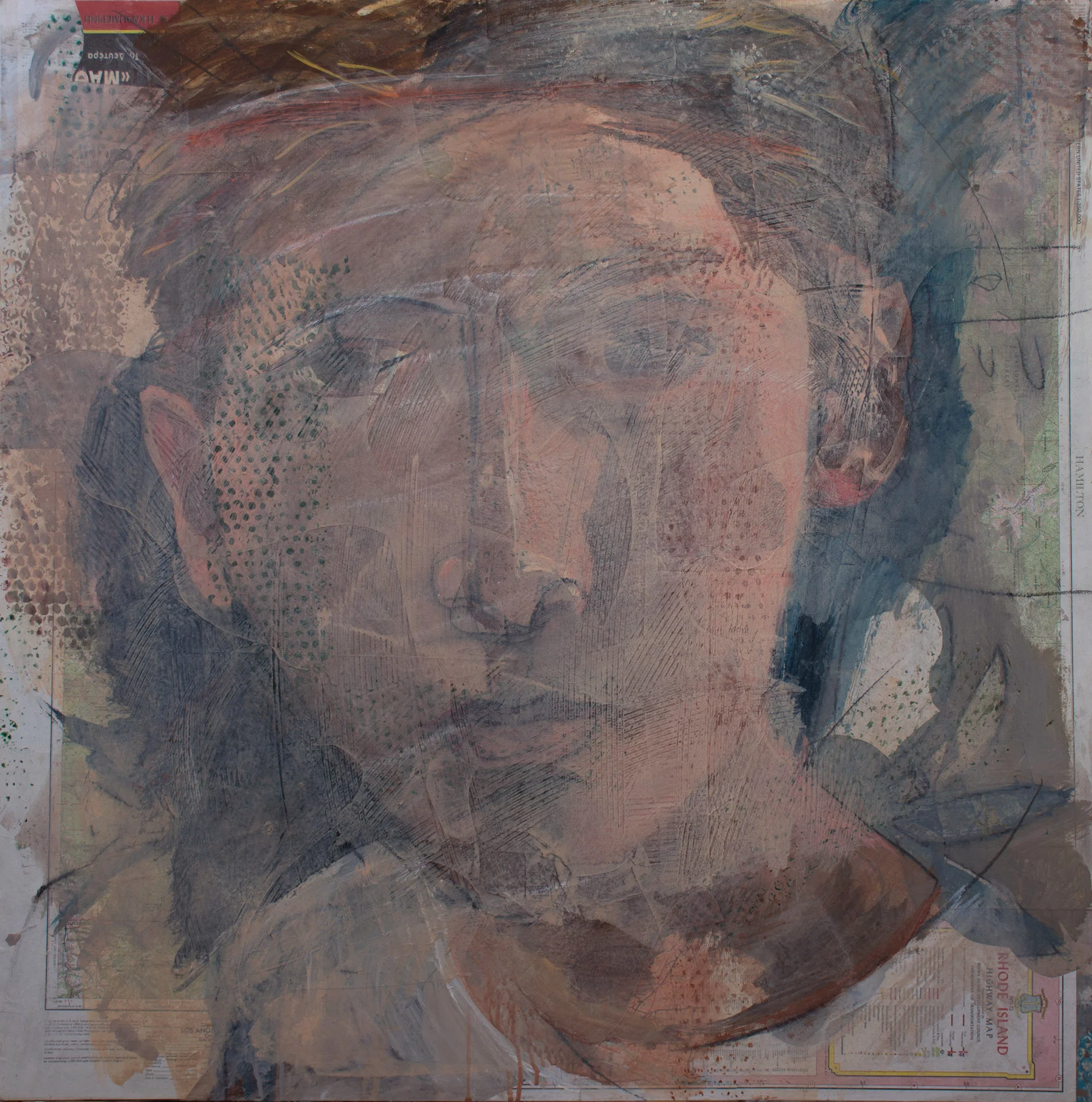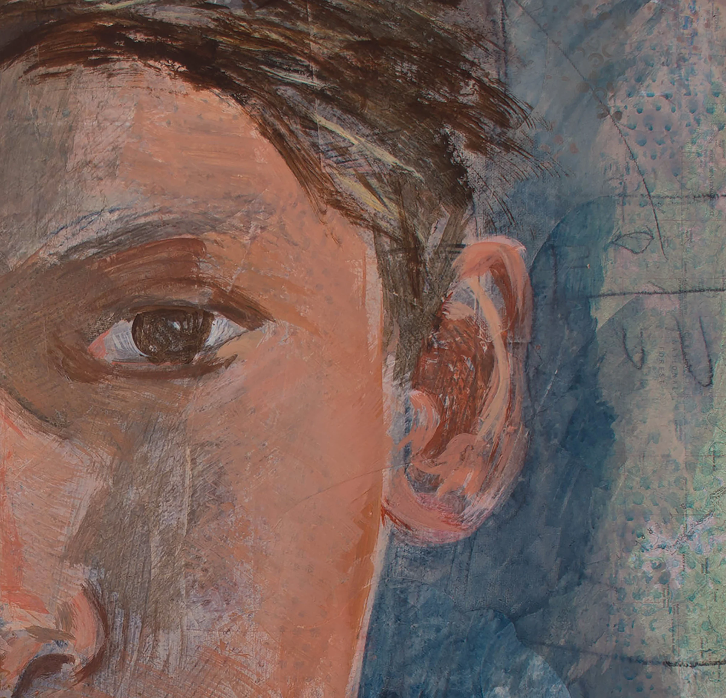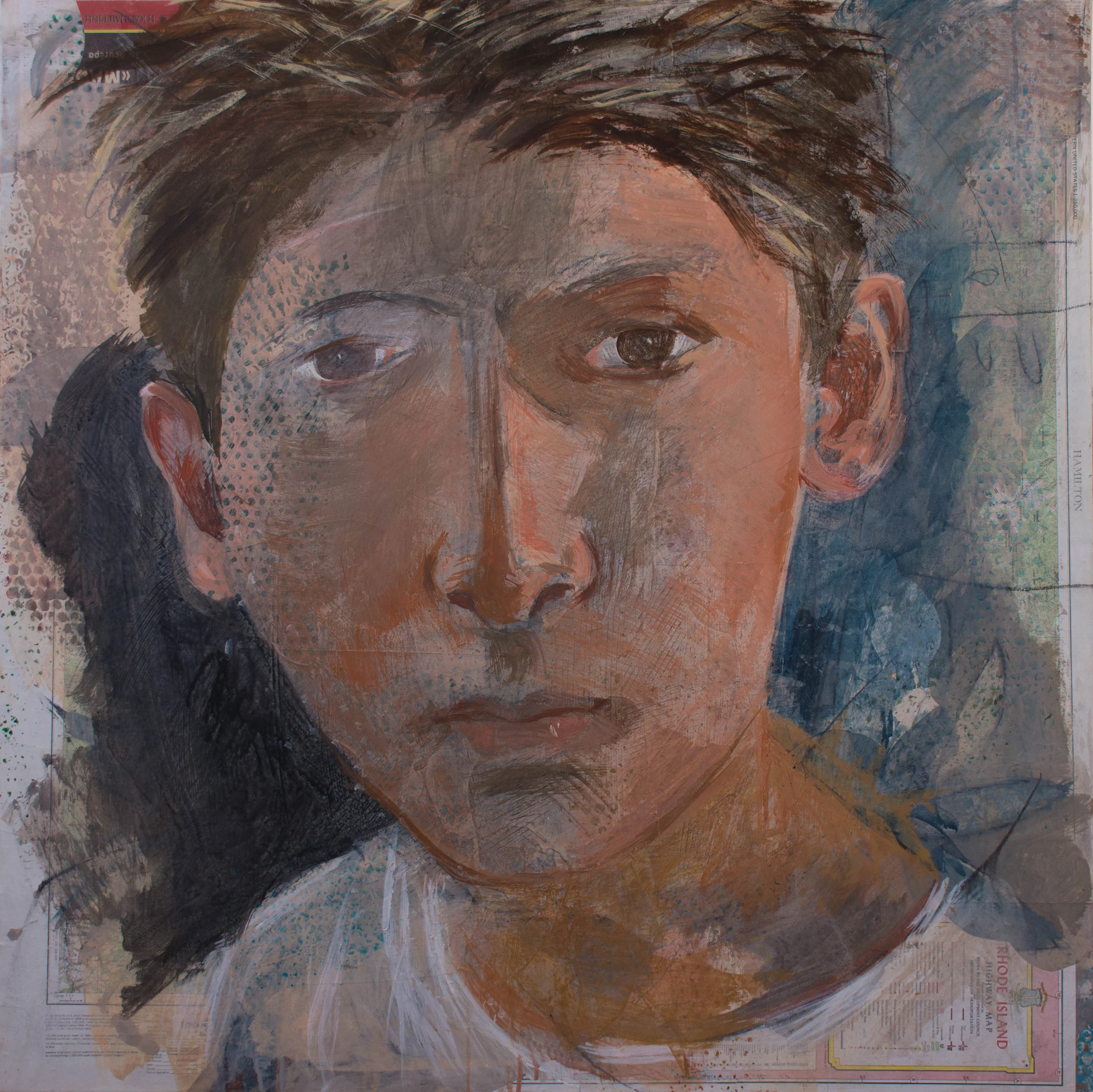 1:42: i spent the last 2 hours going back in after the scrumble. the tone is definitely improved and is lighter overall. it's shaping up, and is beginning to take on an identity, beyond the resemblance or lack thereof to philip. when i look away then glance at it, i am reminded of dimitri's gaze, which is not surprising: piercing; critical; sensitive; a tad pissed off and compassionate. right now, i'd put it up there with the most successful paintings in the series.