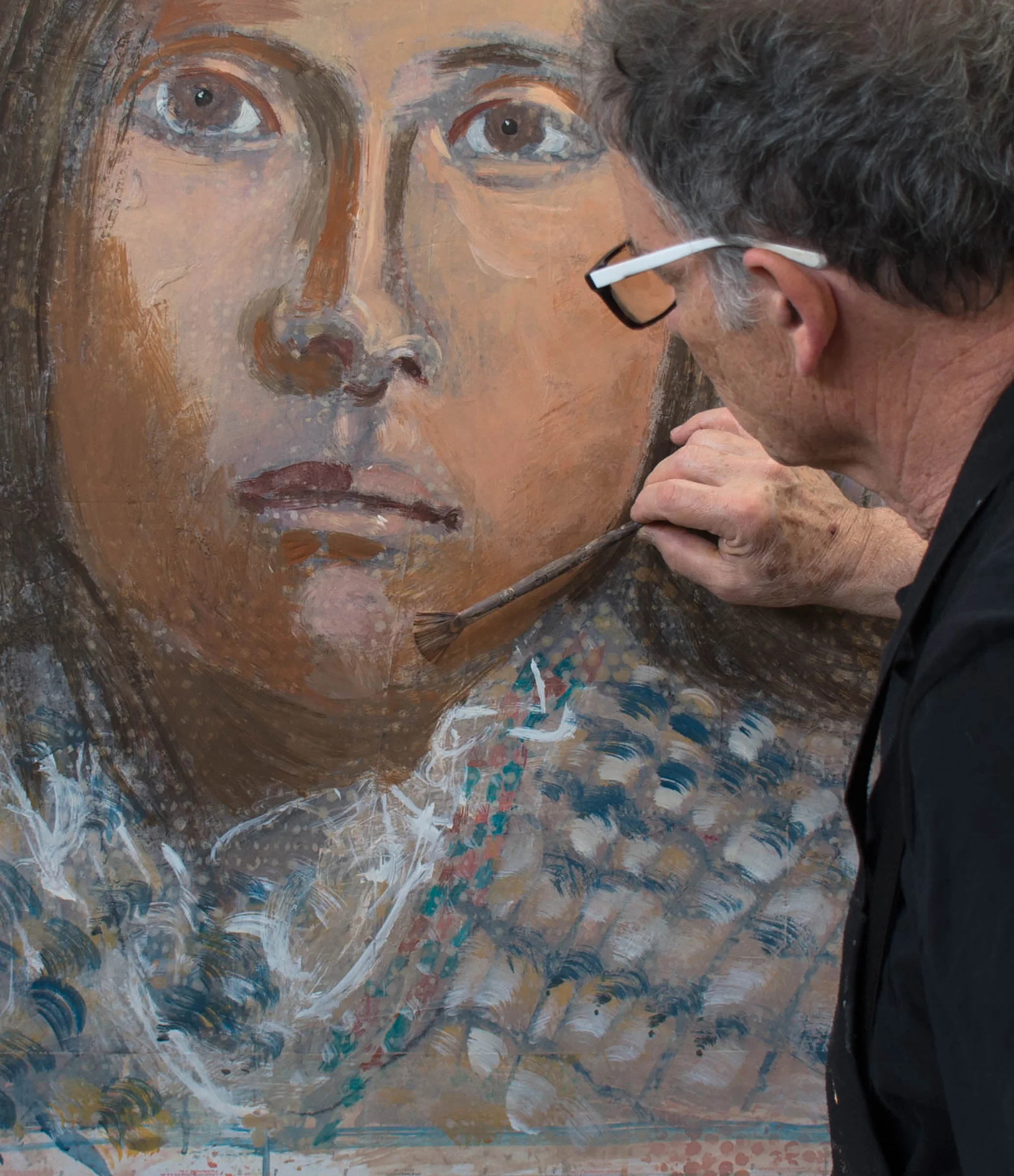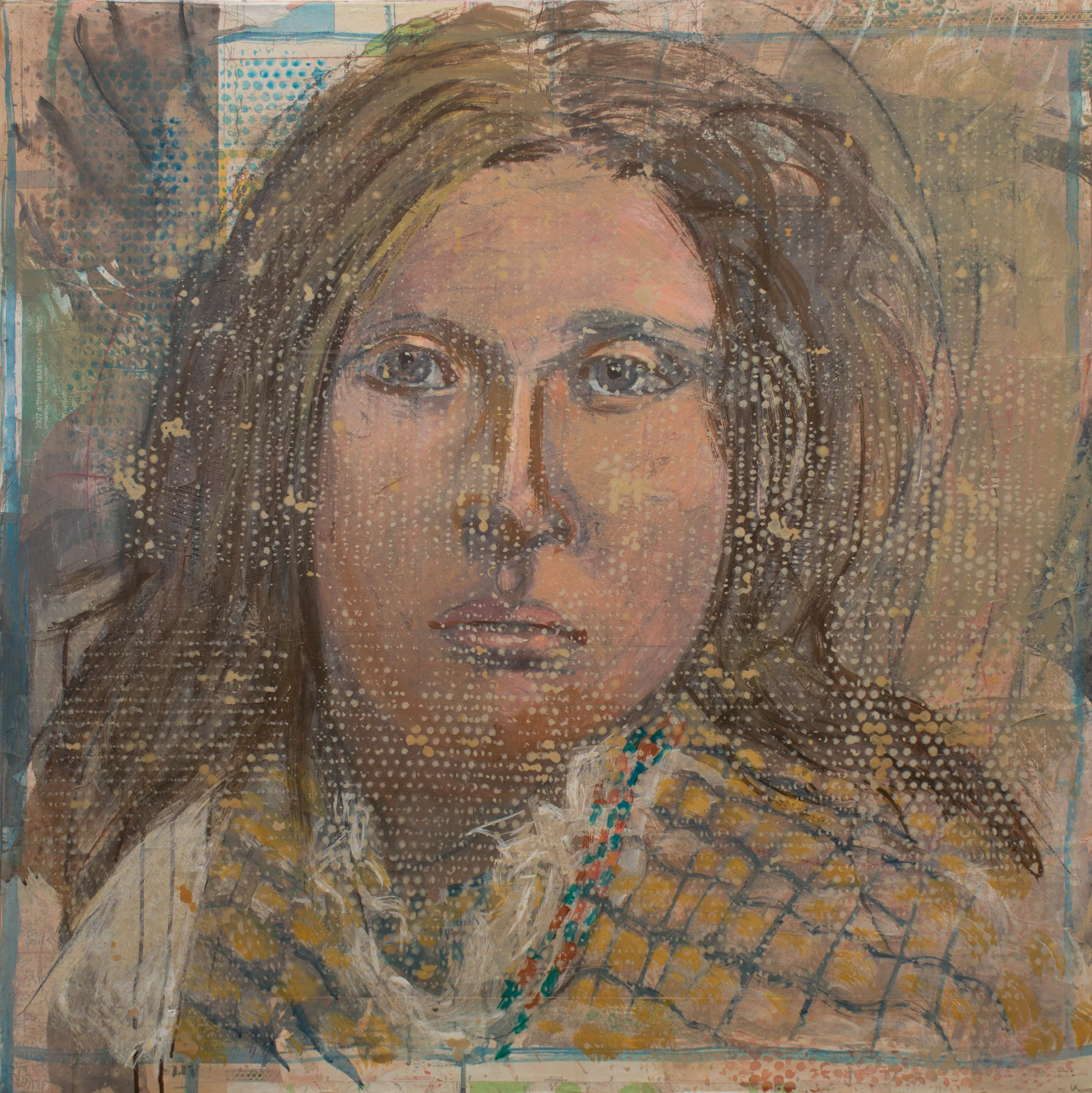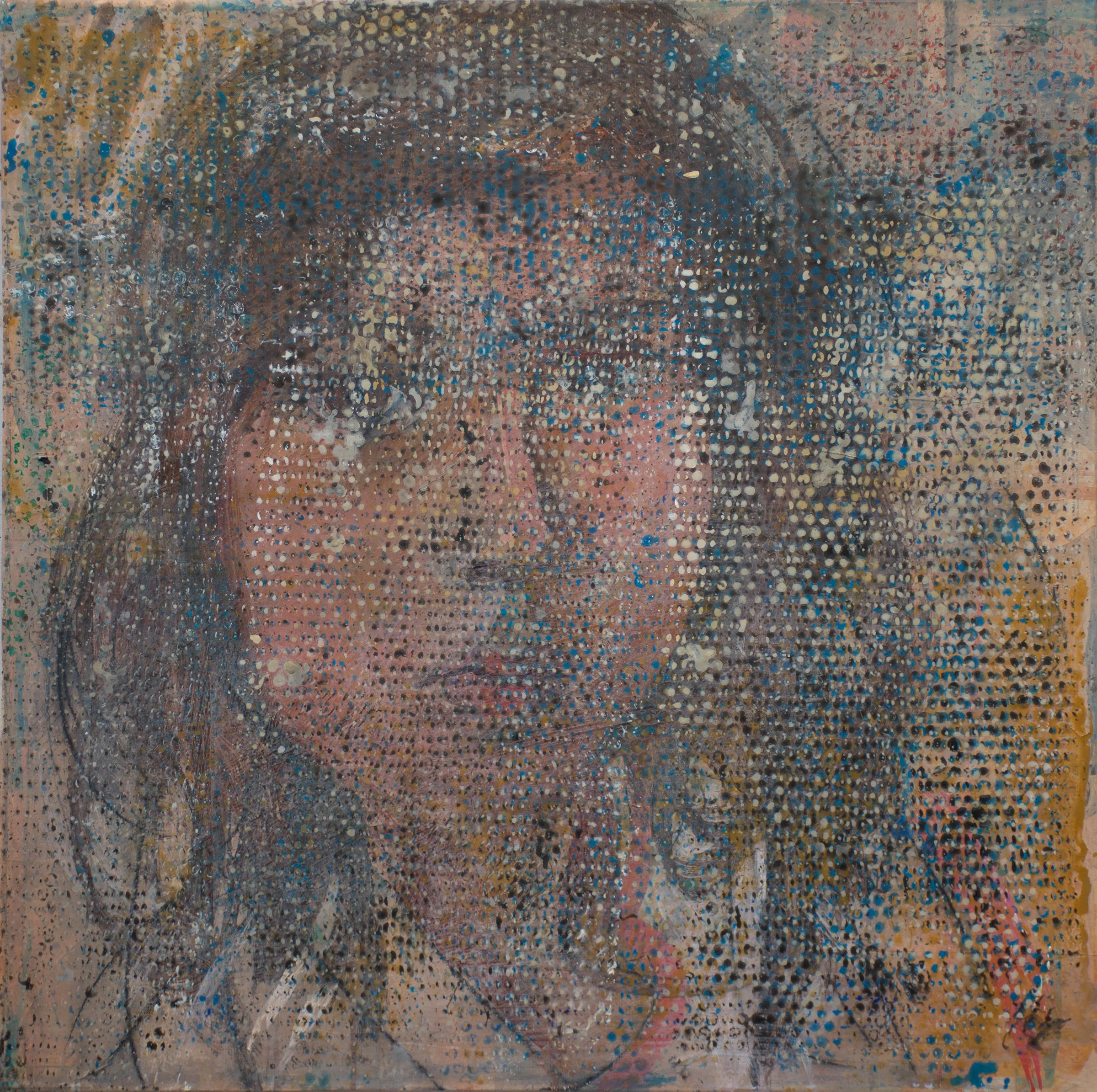 2:27 PM: un-dotting. yep, there were just too many of those dam dots in gaze 23, so i painted back into the face & hair, made changes to the background color and removed the yellow highlights on her shirt. I've now concluded that dan & mikela's feedback was spot on. and that's what friends (and lovers) are for.