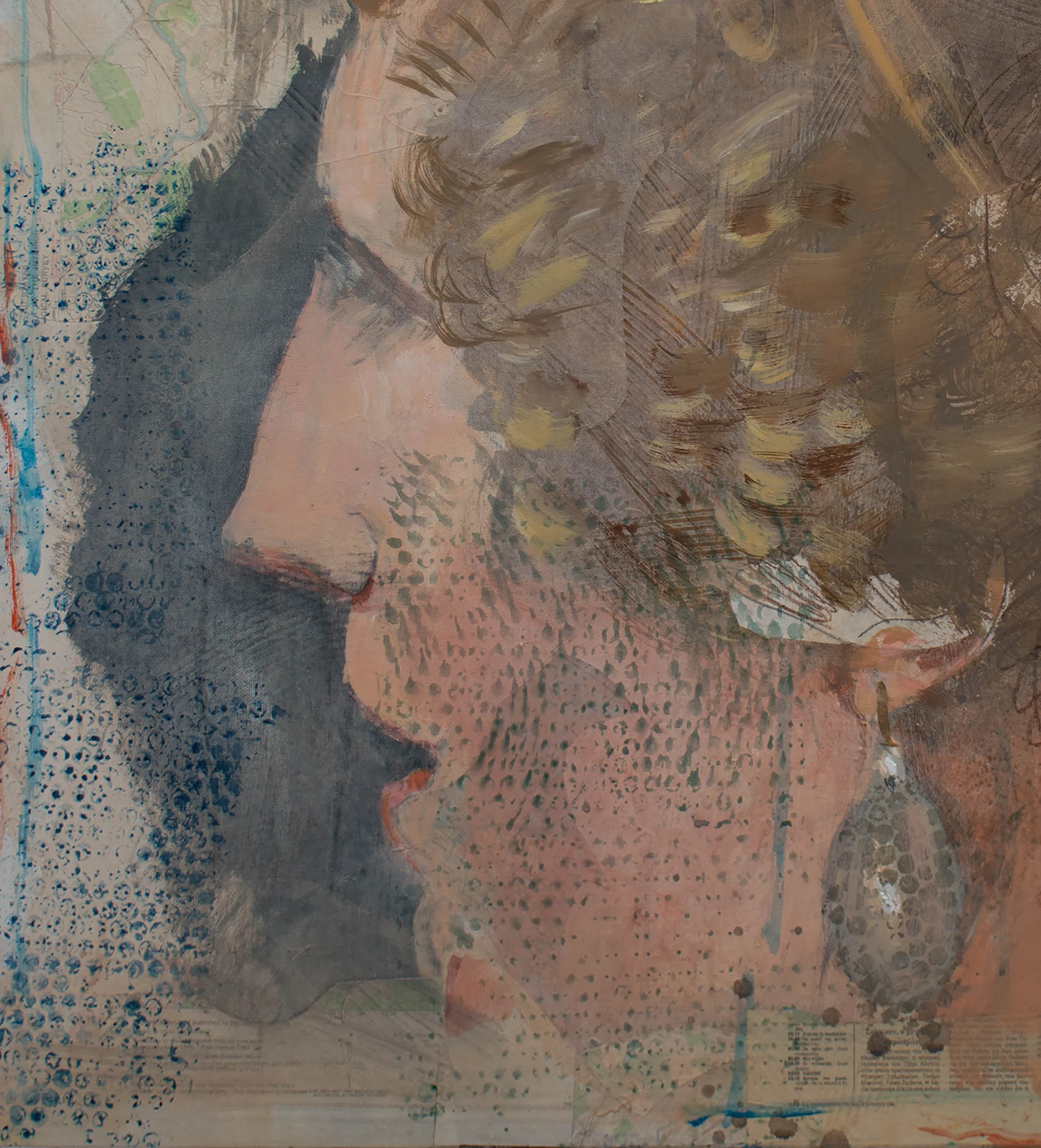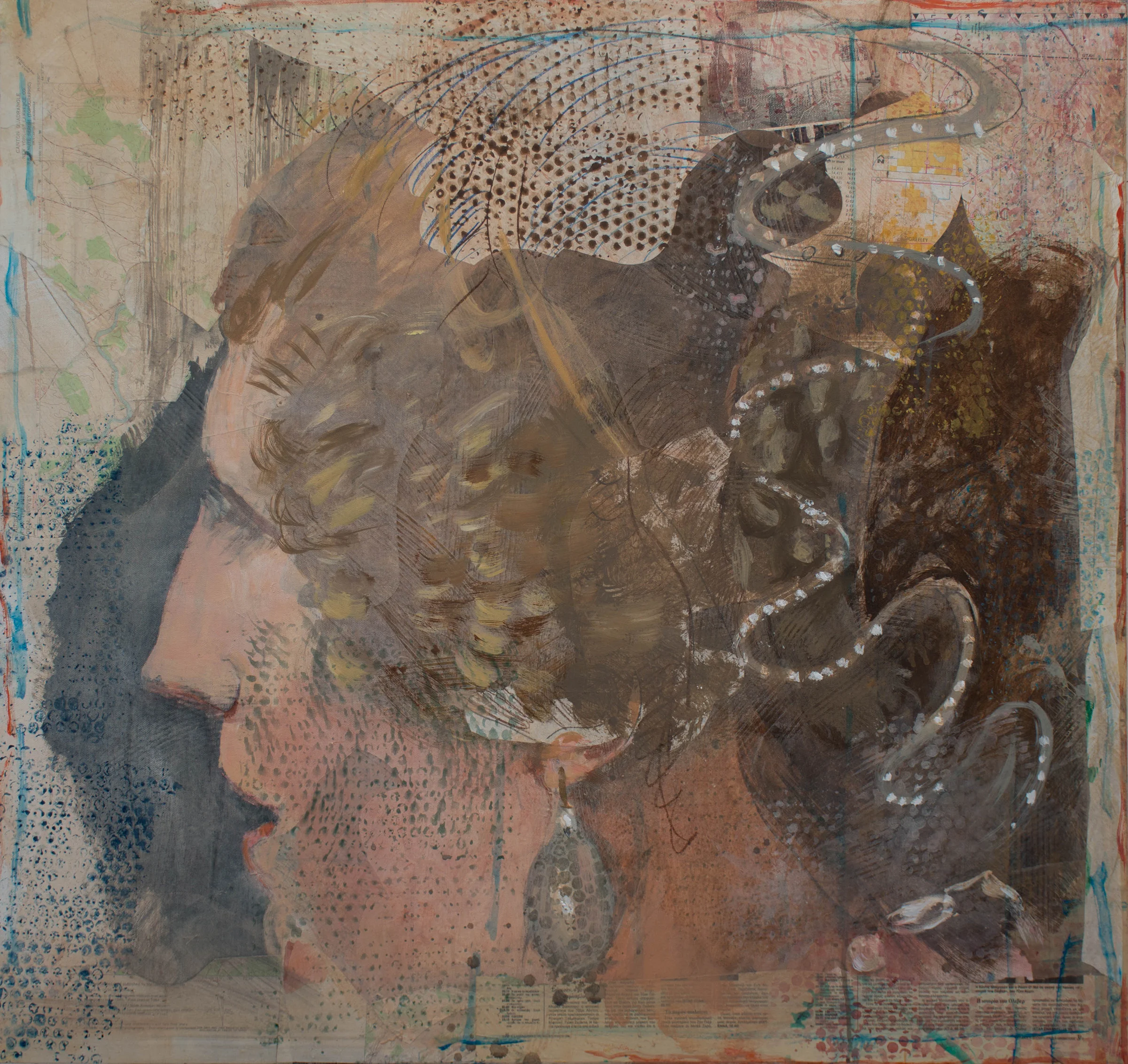 not unlike all it's brothers & sisters in this series, it has gone through a long, layered journey. unlike most of it's siblings however, the image has remained the same as the original drawing, based on vermeer's mistress and maid.