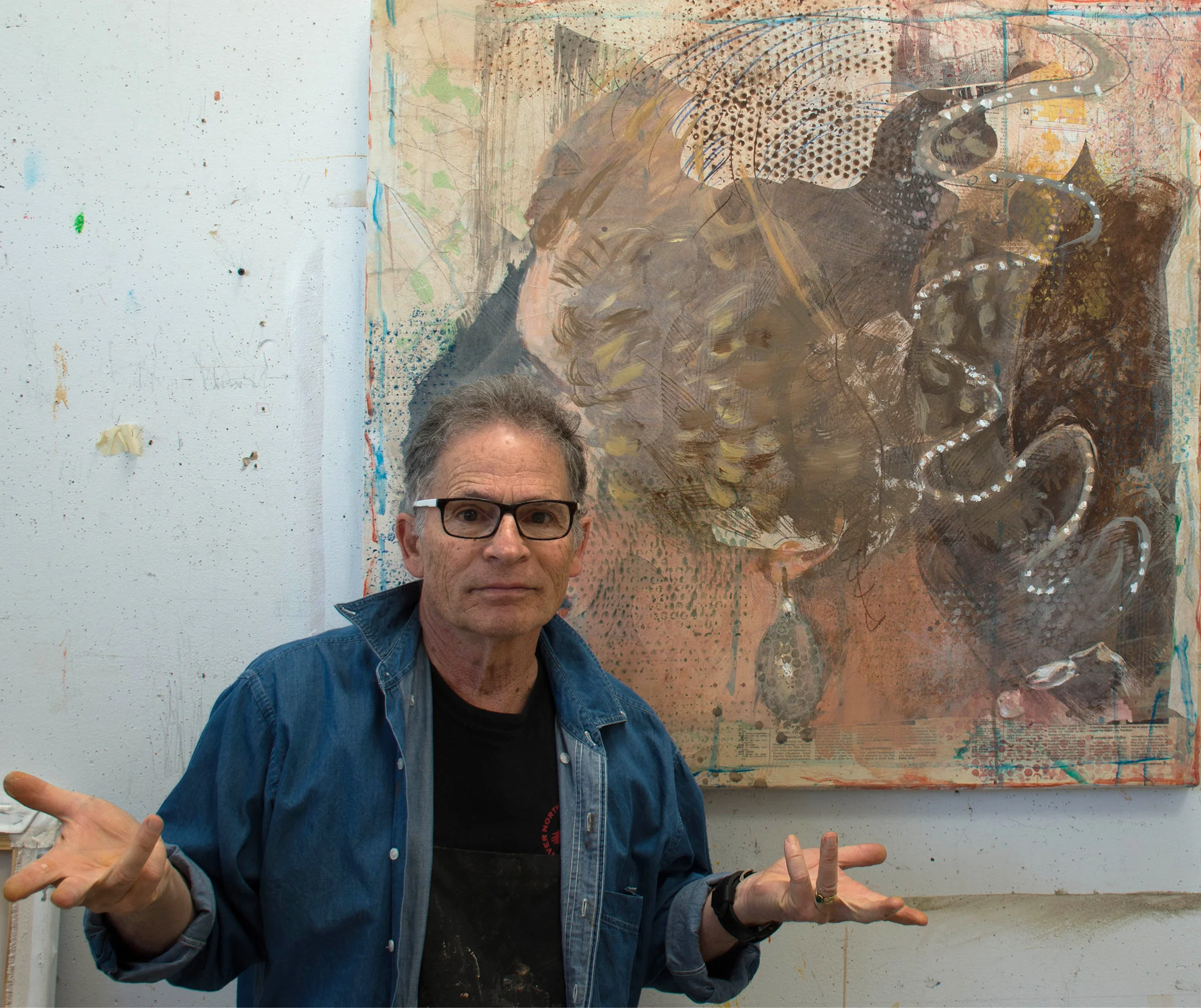 so i need to unstretch it from the masonite mounted on stretcher bars, which gave me the hard surface i need for collaging, to plain stretcher bars, which are so much lighter.