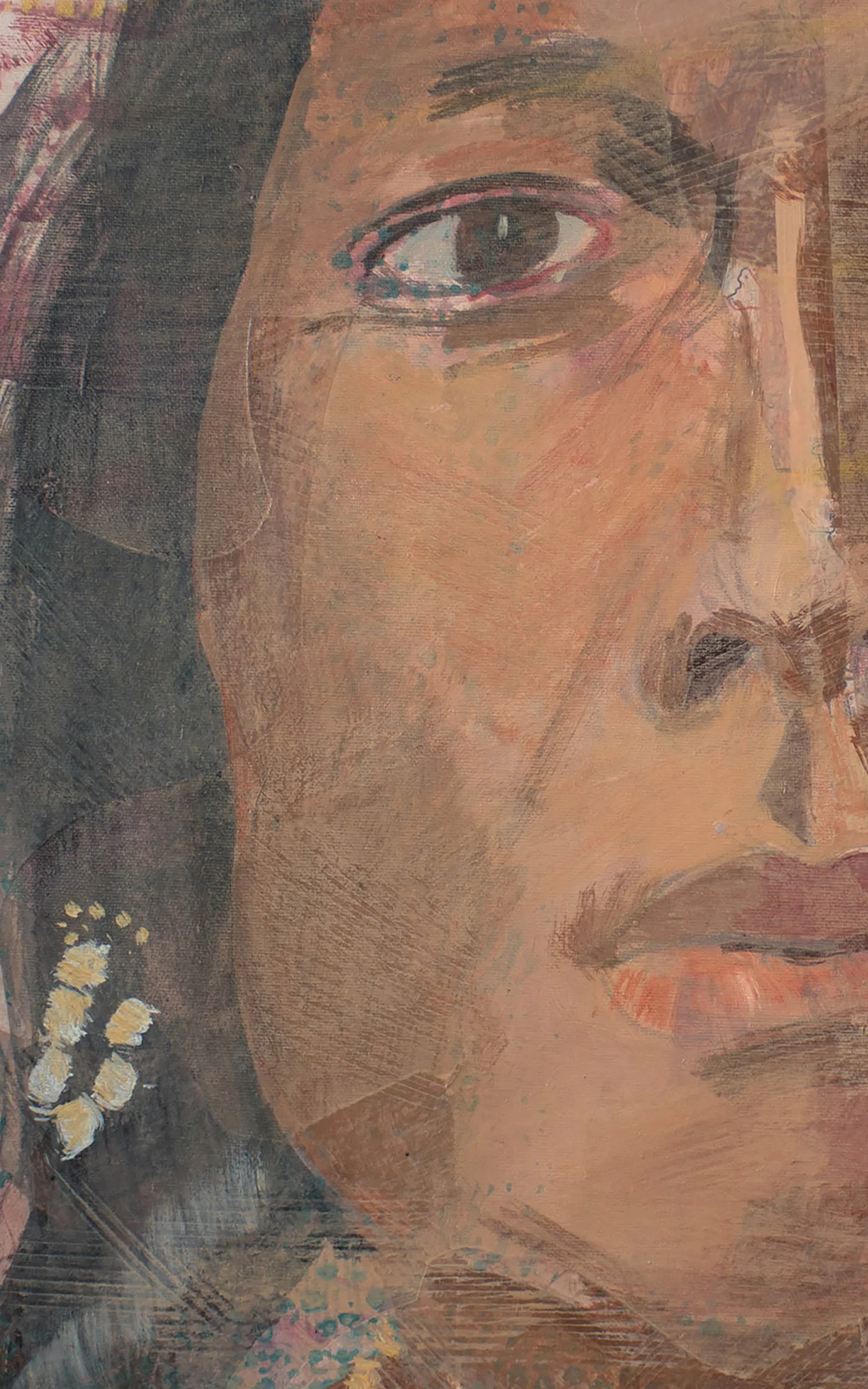 this would be an example of a correction in content, as opposed to shifts in the overall picture plane. you never know; this maight be an opportunity to break up the representational aspect of this painting by collaging in that quadrant, and might end up actually enriching the complexity, and mystery of the painting, in the same way this has occured in all the rest of this series. my attachment to form is a constant, and needs to be balanced with the needs of the whole picture plane, so that the eye is free to roam without getting stuck.