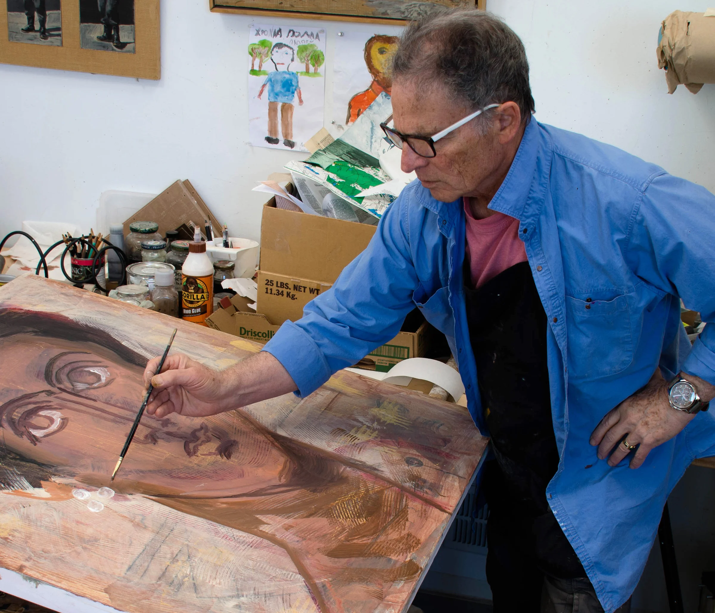 the result, for me, is a particular richness of surface that would be otherwise unattainable. here i'm working on the painting on my table, supported by a box which gives it a slight angle and makes it easier to work. earlier, the box was absent because i was working very wet and wanted to avoid drips. continuing now; more pics as available.