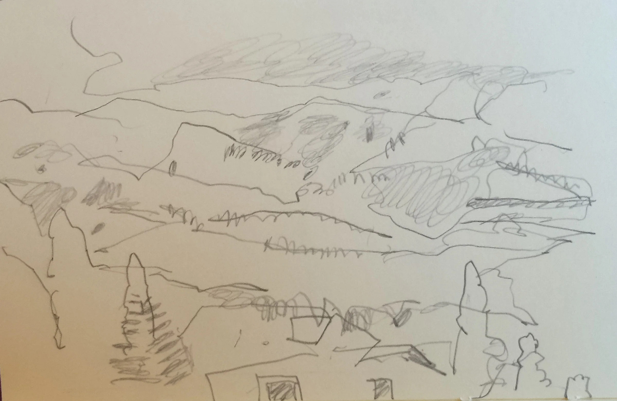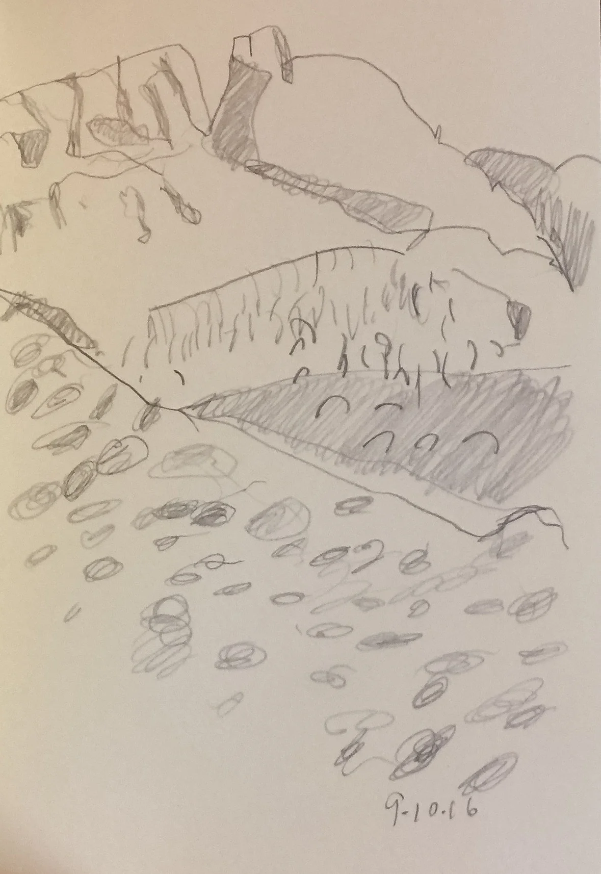 BELOW: a mediocre drawing of mikela from an hour ago; a good drawing of crestone peak from 9/12; a mediocre drawing of the view in edwards done a few hours ago. haven't been drawing enough. gotta keep drawing. it's my life.