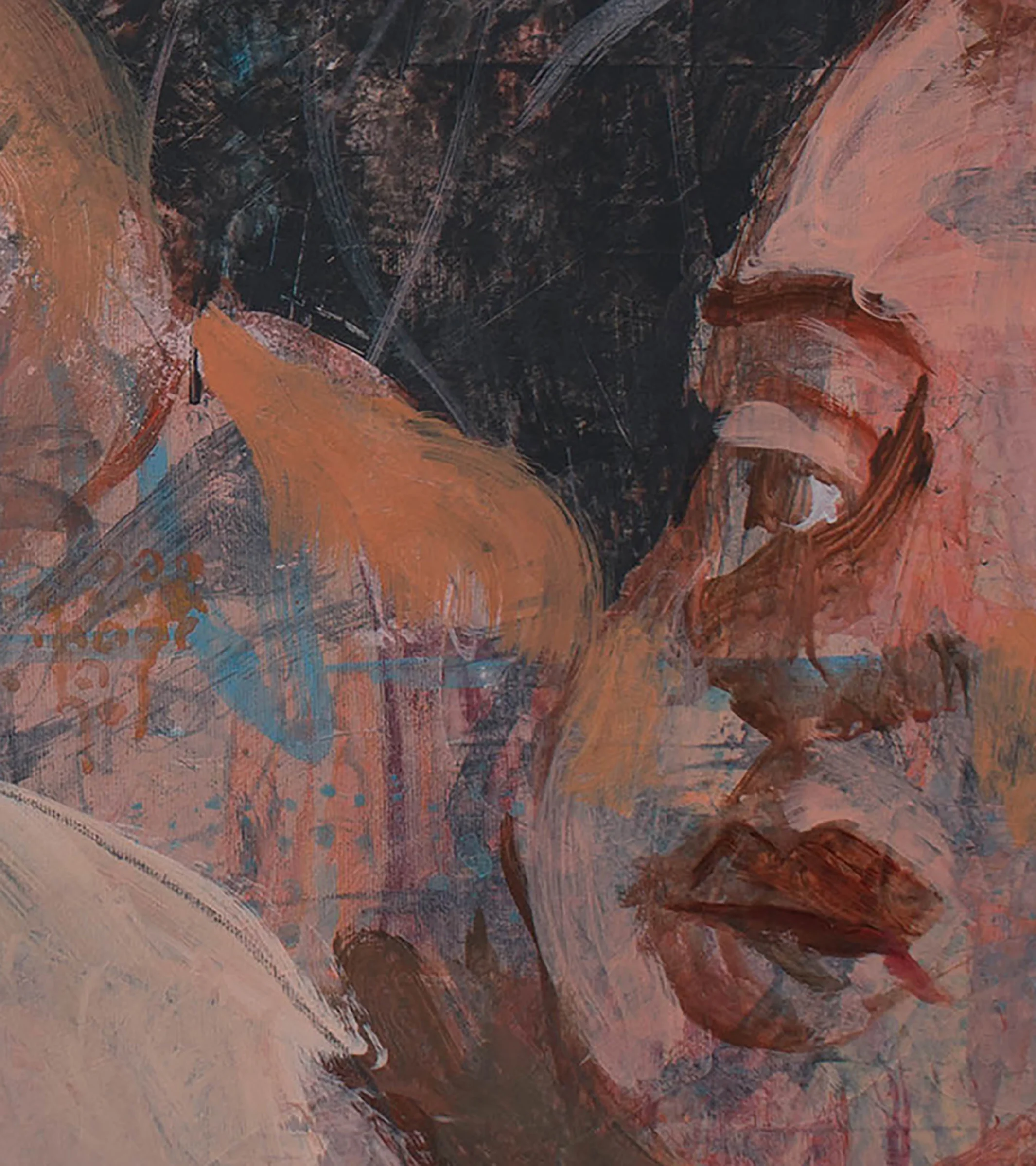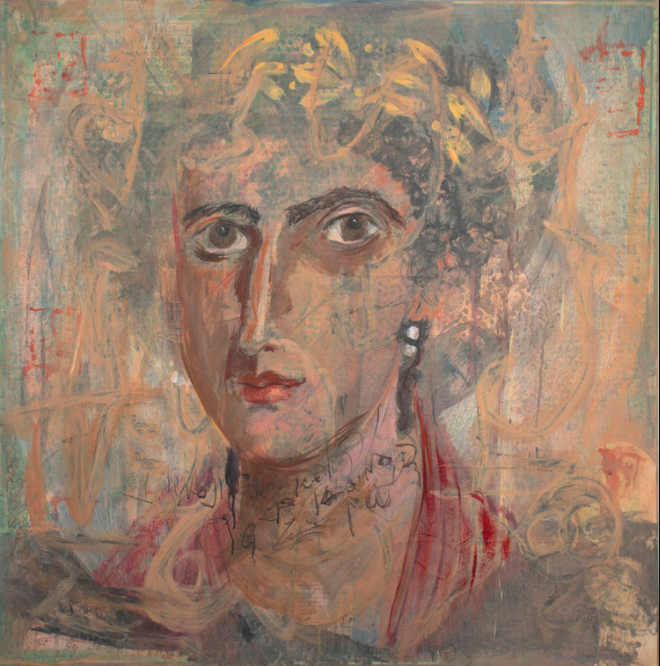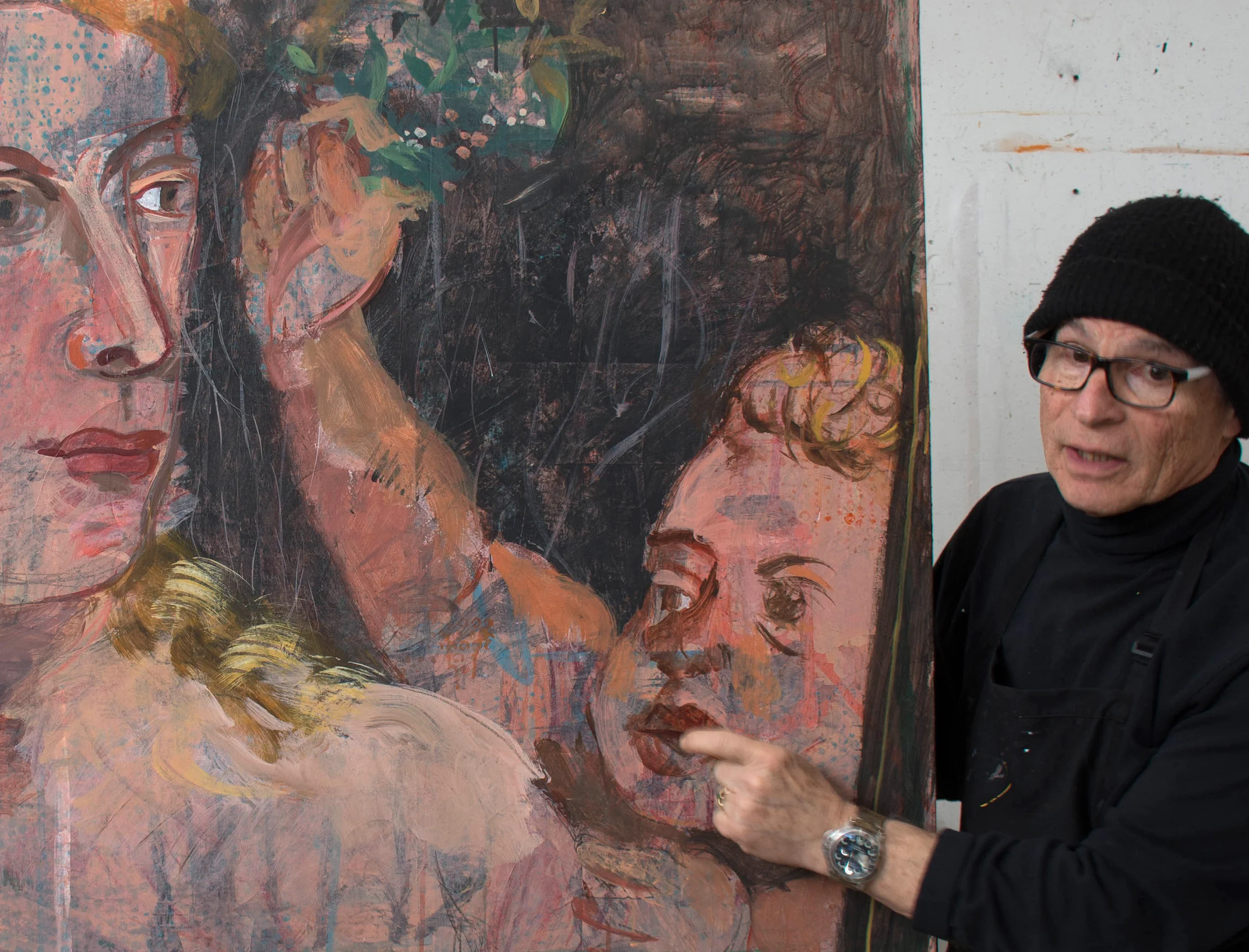 3:10 PM: an overcast sky with a persistant light rain made it hard to work today, as i depend solely on natural light to paint. nonetheless, i did a fair amount of work on gaze 34. identity and abstraction do indeed inform one another, as this imagery, inspired by a detail of titian's venus of urbino with mirror, carves out and defines it's space in the square 38x38" format. venus and cupid constitute the identity, which is abstracted in a way only possible by an artist; me, who has been a student of the abstract movements in art for decades.