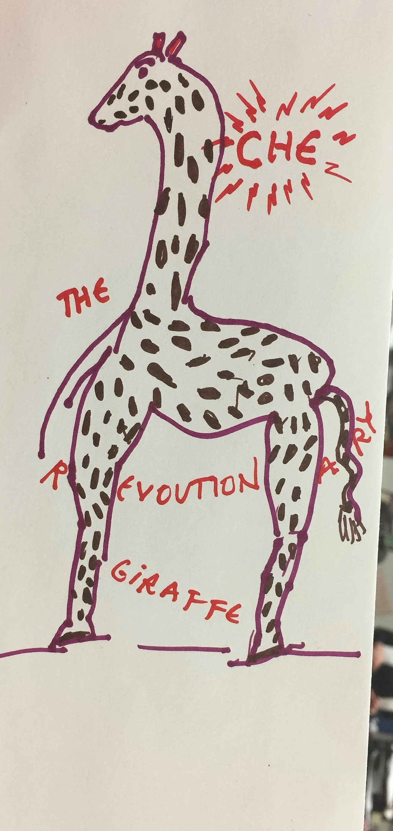 we began the meeting by going around the room and viewing each participant's drawing of their revolutionary animal. mine, on the right, was CHE, the revolutionary giraffe.