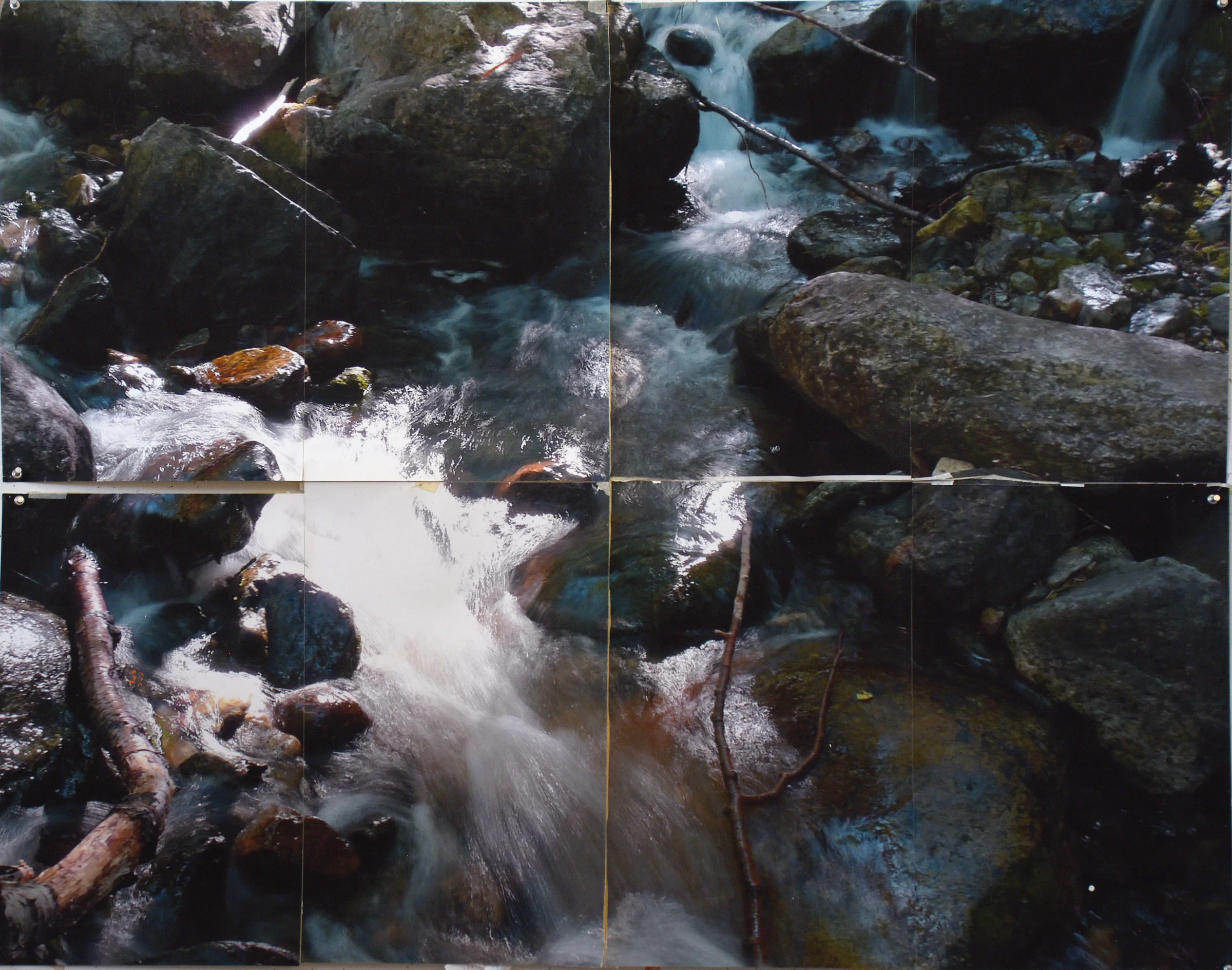 i found this grouping of 4 photographs of the creek, which i shot in 2009. after dividing a piece of paper into 4 sections, i began a drawing based on this photo montage.