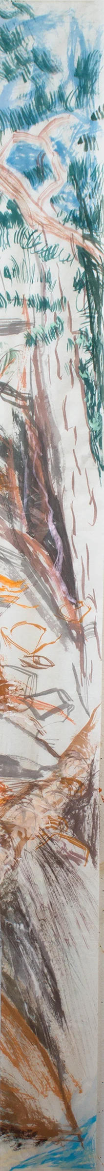 1:40 PM: i began another creek scroll painting this morning. i wasn't quite in my groove and it became way too busy. i was about to declare it a failure when i had an idea: save the most interesting part; a strip measuring 12 cm. in width, out of the 35 cm. of the full painting. i went back in and added a few necessary compositional elements and i think i may have saved it. as usual, i'll know once i bring it back to the house & put it up on the wall.