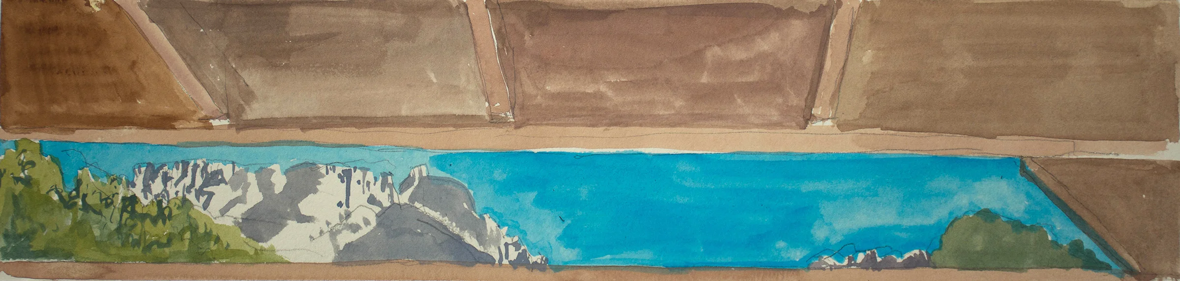 early stage of snow capped peaks gouache, 4x16"