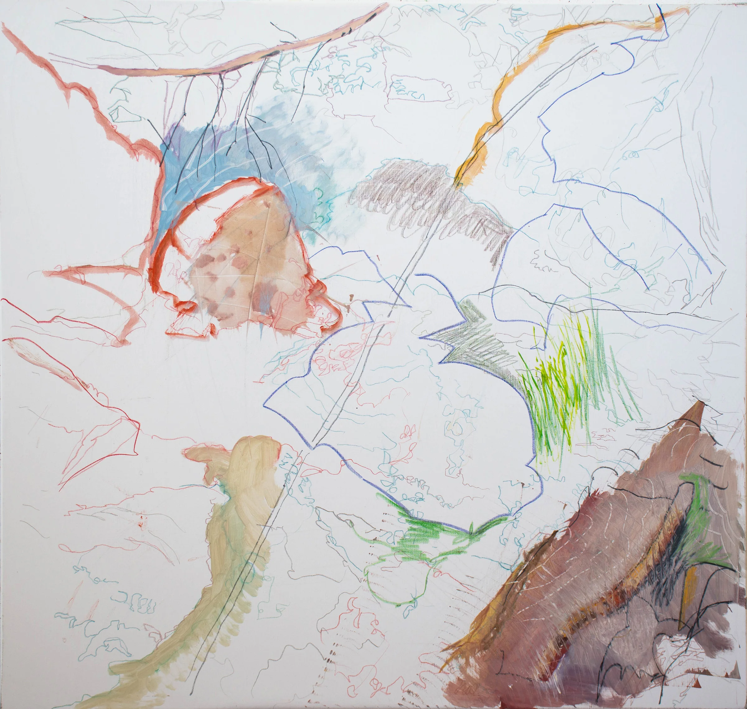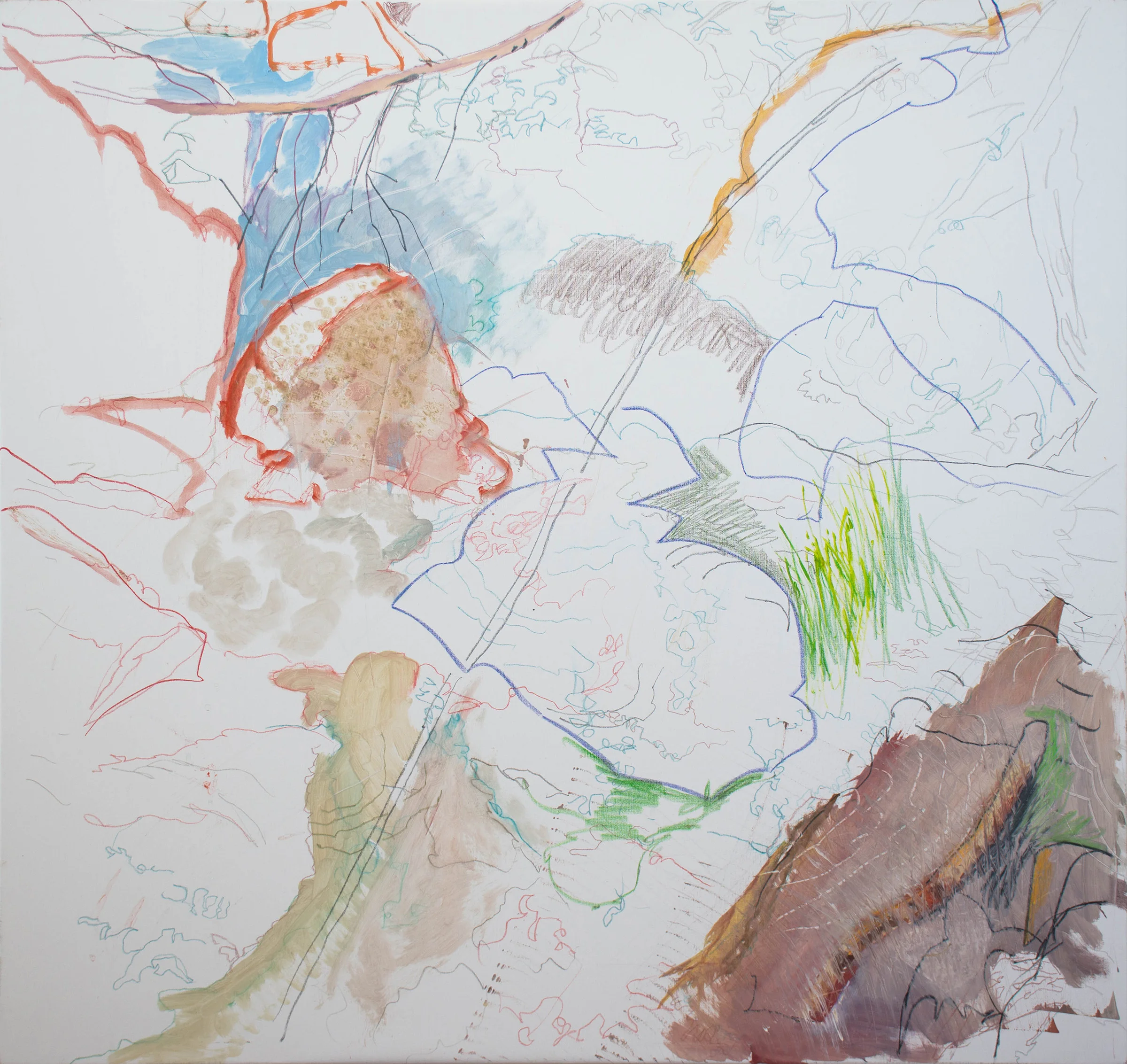 12:53 PM: this morning i began work on landscape series 2, which i made the drawing for yesterday. using oil, crayon & graphite stick, i moved slowly, not wanting to overdo it.