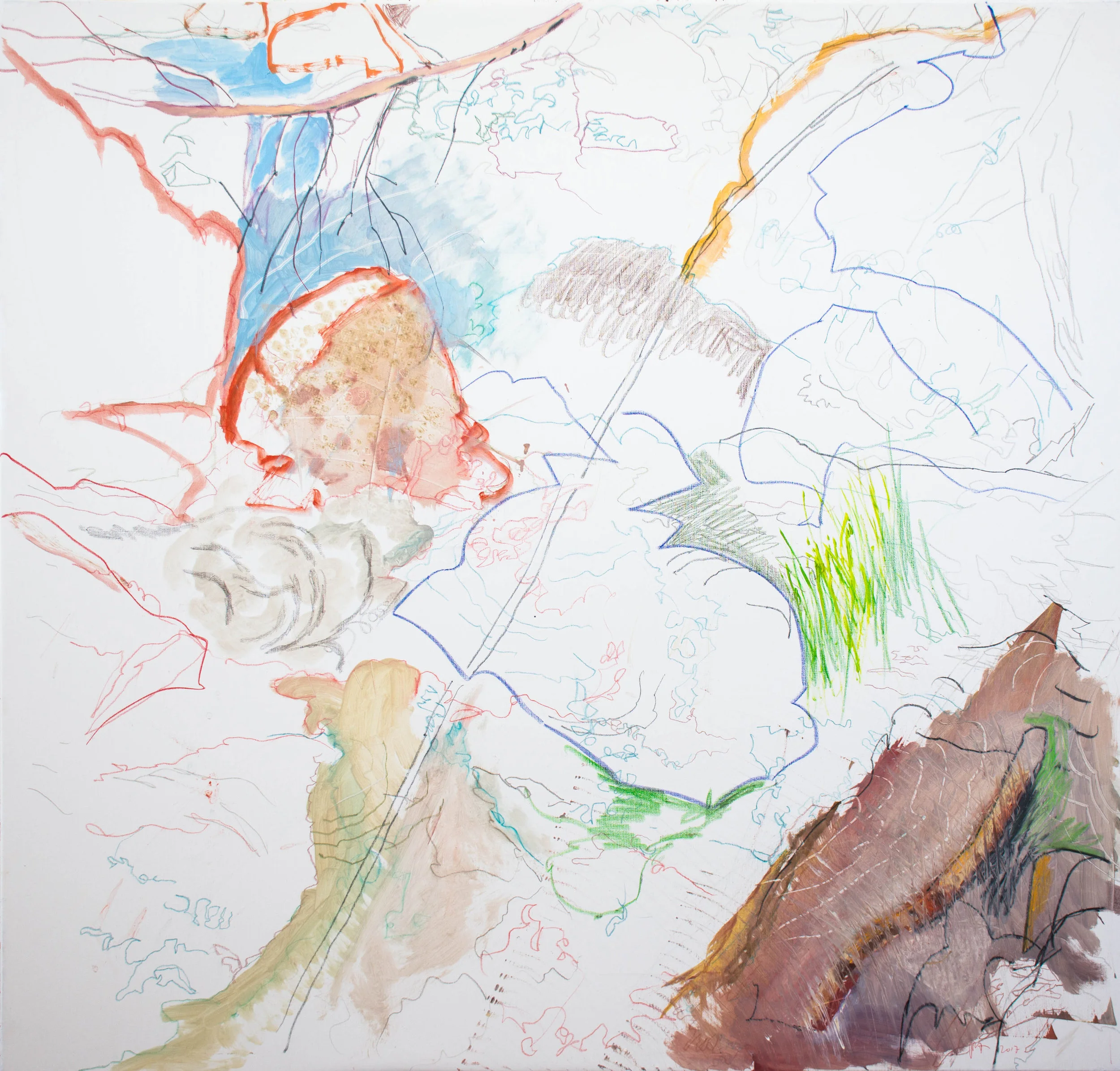 i also shot a final photo of the painting, which includes some small additions to the area beneath the red rock on the left. this will give me an accurate record for my archives. it's a very subtle painting, difficult to reproduce digitally. no matter how much i adjust the image, much of the subtlety found, for example in the areas where i employed colored pencils to make the preliminary drawing, is lost. if you click on the detail on the right, you'll see what i mean.