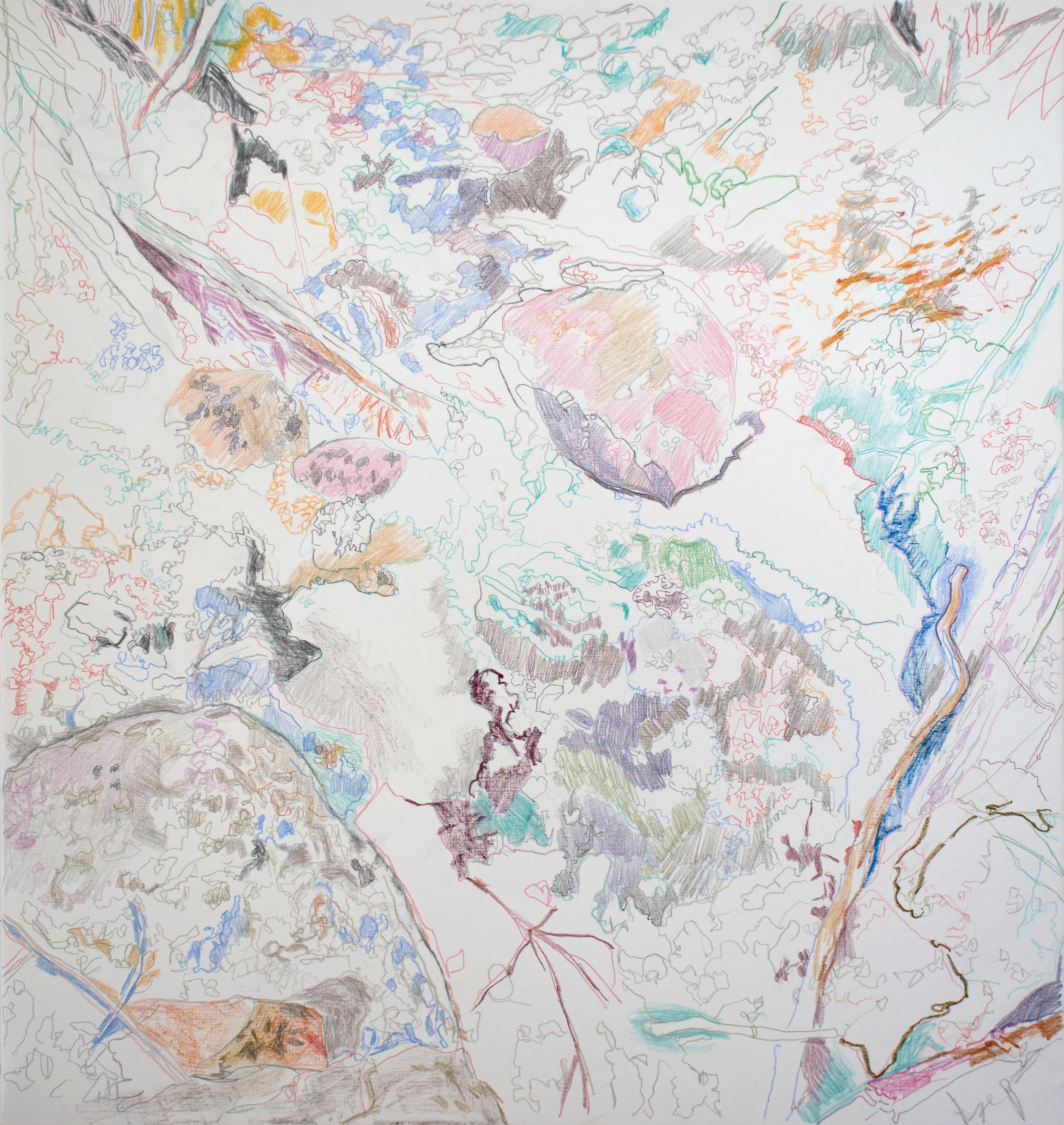 12:50 PM: this morning i continued work on landscape series 4, continuing to limit myself to colored pencils, crayon, graphite & oil pastel, but not employing oil paints. and it may remain that way. it has a delicate presence that i'd like to maintain, and using oil paints might upset the balance.