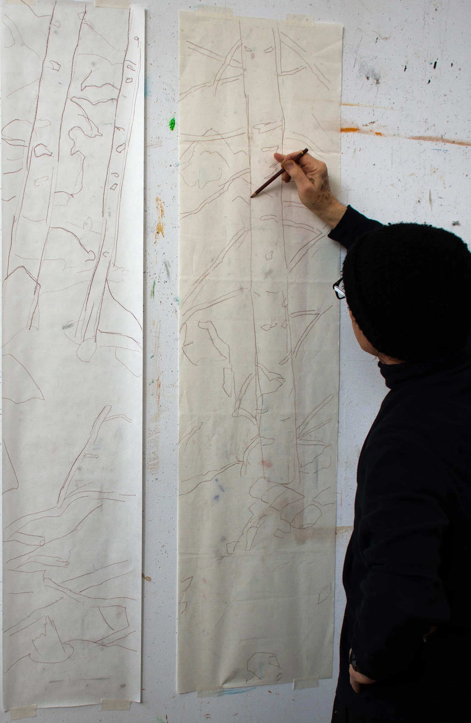 i made the drawings for 2-12-17 creek scrolls 1 & 2. i didn't make drawings for the previous 9 paintings in this series, so lets see what the difference is once i start applying the gouache colors....