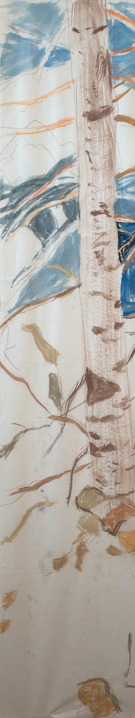 9:49 AM: yesterday i made this painting: 2/14/17 creek scroll. the painting was made over a drawing i had made a few days earlier and then cropped this morning, when i determined that the composition was not working and about 3" of the right side needed to go. i think that did make a significant difference. so that's the last piece of this handmade japanese paper i recently found in my flat files, which had been purchased about 10 years ago at the now defunct NY Central Supply.
