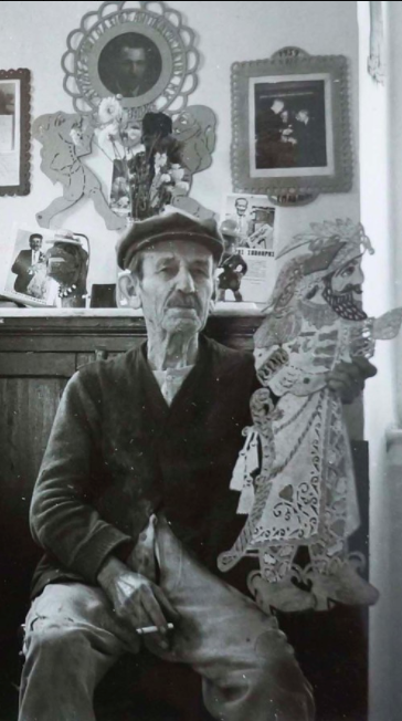 10:20 am: Photo of the late great Karagiozis (shadow theatre) player Sotiris Spatharis. I shot this in his Plaka workshop, where he made figures like the one he's holding. My studio at the time was a short walk away, and I visited him frequently.