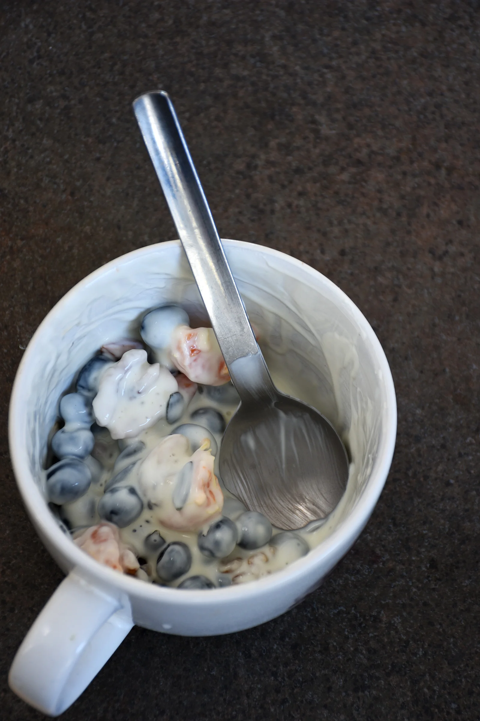 found the rough equivalent of the japanese rice paper i've been using for my new creek scroll series at meningers in denver & bought a couple of rolls. I taped a piece to my studio wall and am about to try it out. on the right: this morning's breakfast, yoghurt with fruit & nuts. after a cloudy start to the day, the sun has emerged & i'm ready to get to work.